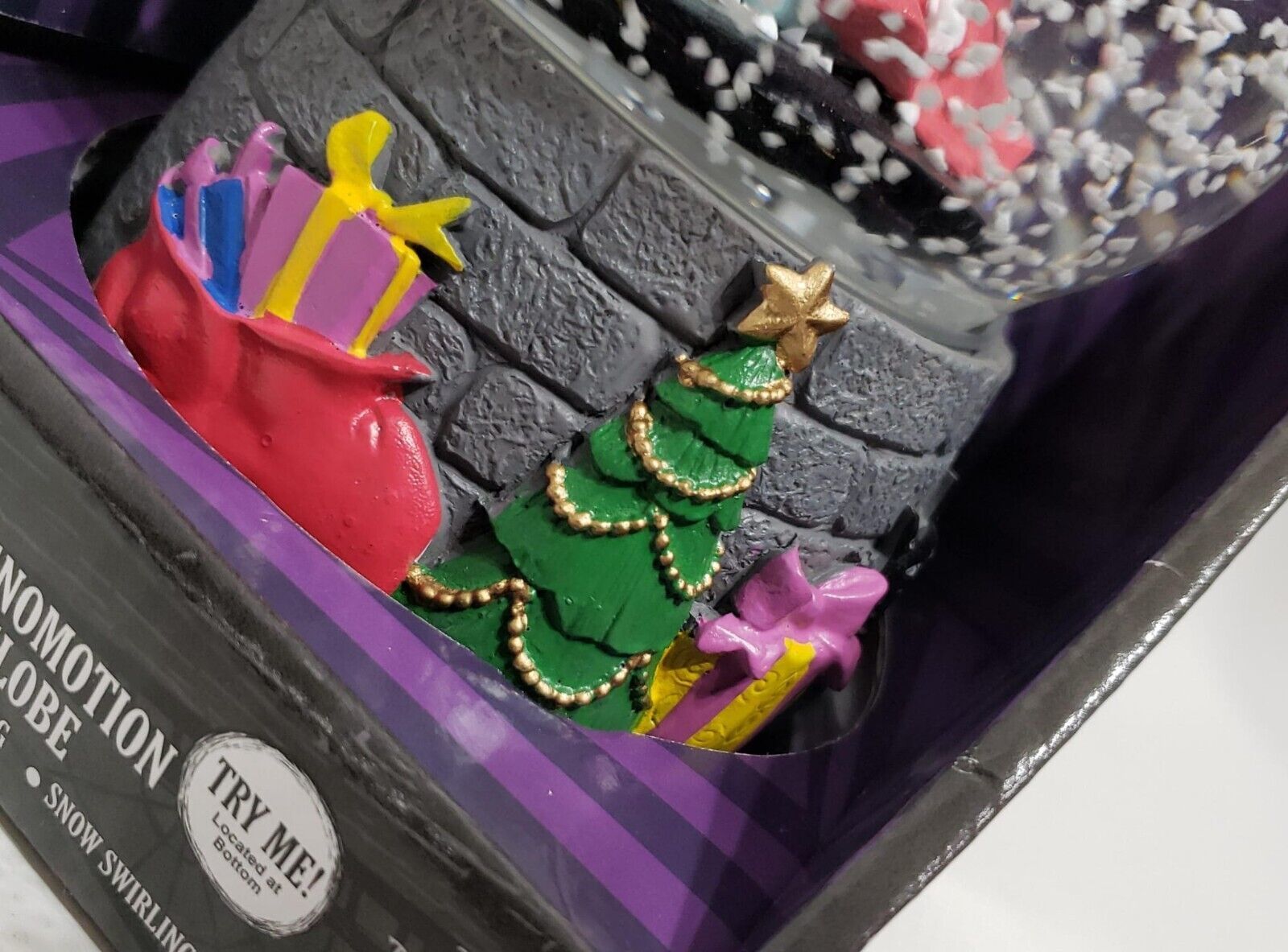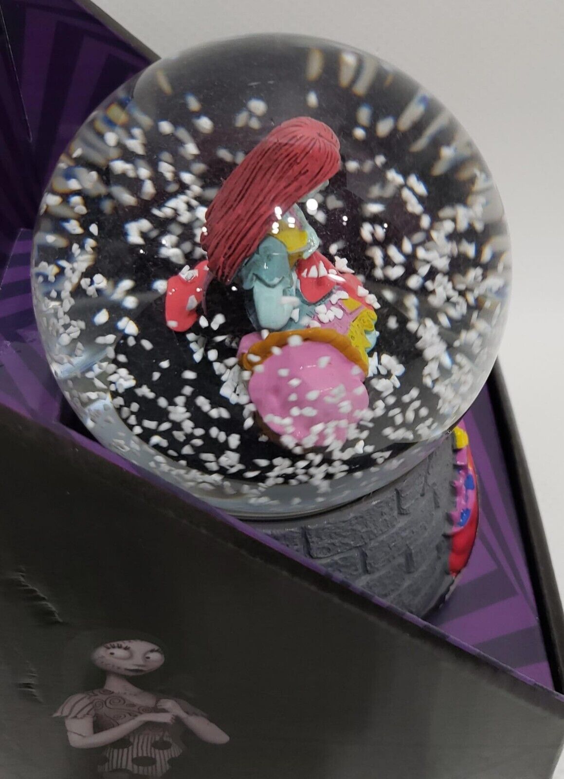 Get into the holiday spirit with this enchanting Nightmare Before Christmas musical snow globe. Featuring Sally, the beloved character from the classic Disney movie, this snow globe is a must-have for any fan of the film. The globe is filled with sparkling snowflakes that swirl around Sally as she sits on a pile of presents, surrounded by a festive Christmas tree and a red stocking filled with gifts. The base of the globe is designed to look like a stone wall, adding to the whimsical and magical feel of the piece. As you wind up the globe, it plays a delightful tune that will transport you to a winter wonderland. This snow globe is not only a beautiful decoration for your home, but it's also a fun and unique way to celebrate the holiday season. So why wait? Get your Nightmare Before Christmas musical snow globe today and make this holiday season one to remember!