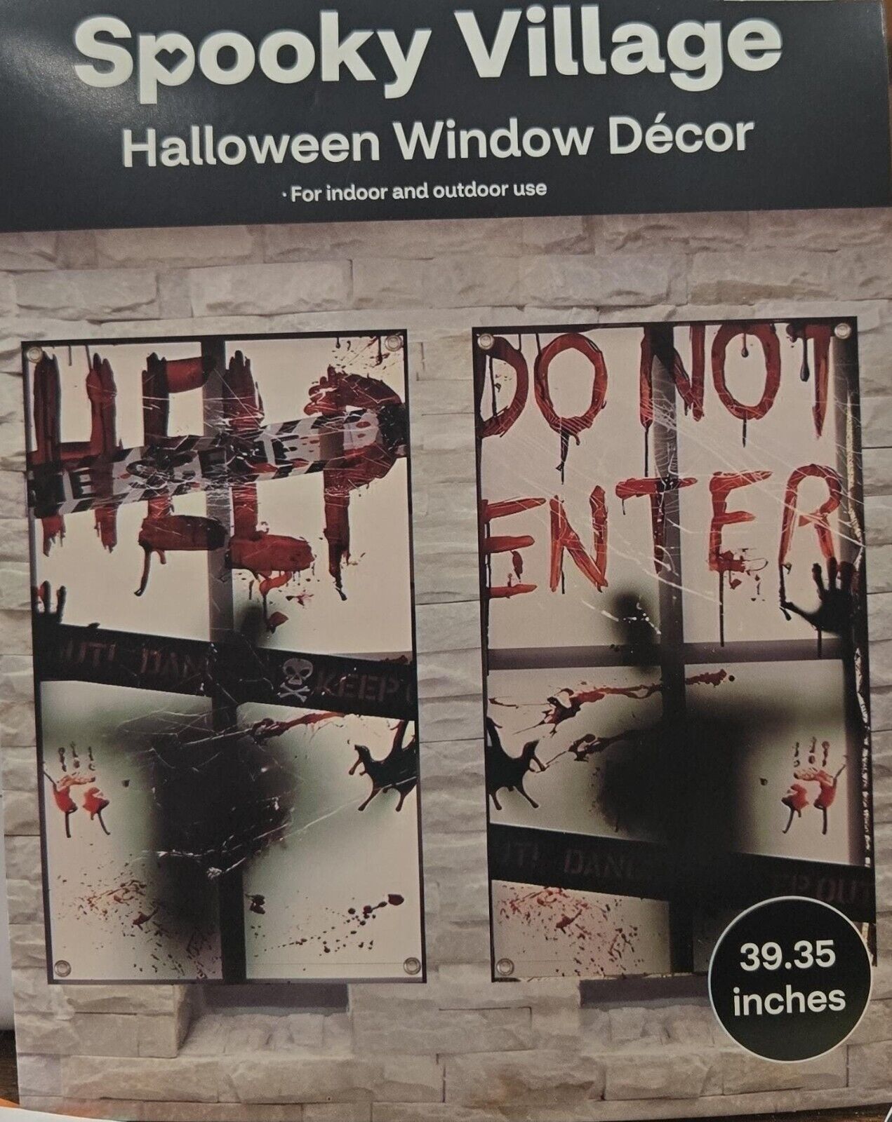 Spooky Village Blood Splatter Help Do Not Enter Halloween Window decor 39.35 inches 2 Pieces