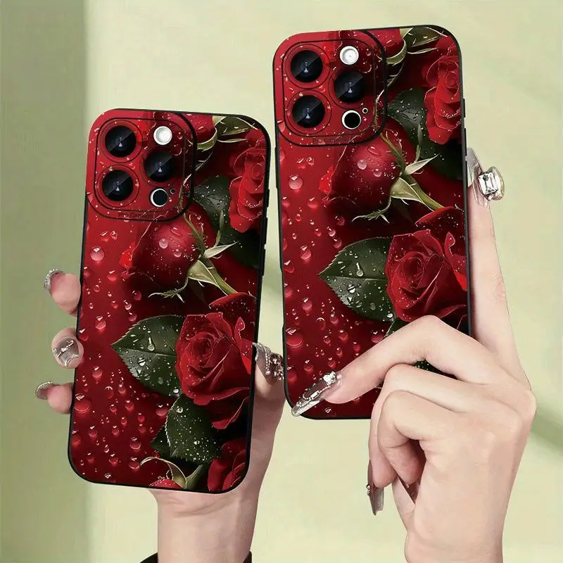 1x Red Rose Pattern Phone Case (Mobile phone and screen protector not included)