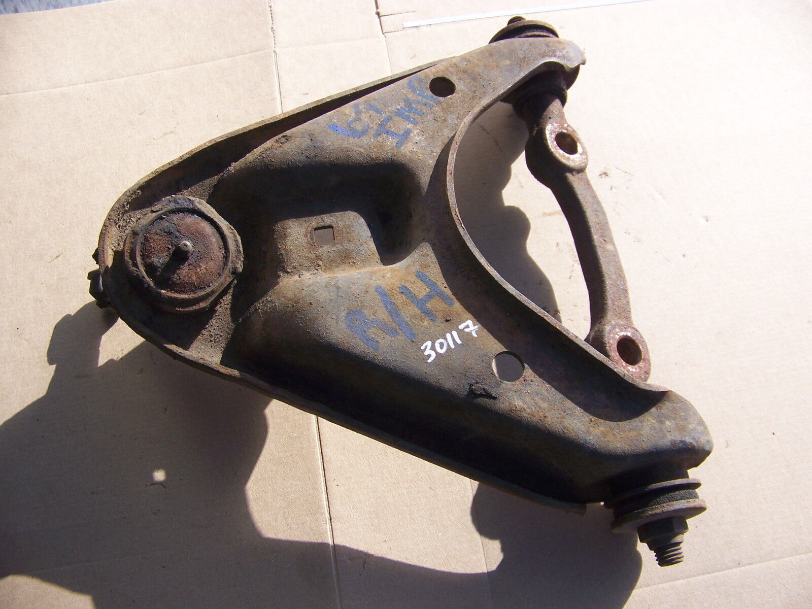 This was removed from a 1969 Chrysler Imperial. Assume the bushings and ball joint will need to be replaced. This was used in a demolition derby car and may have bends, tweaks, etc. This is being sold for off road use only. Please use the zoom feature to closely inspect pictures. My items are sold as-is, there are no returns. Descriptions, pictures and part numbers (when available) are provided. You are responsible for ensuring that it is correct for your application or purpose. I will ship using your UPS/FedEx shipping account if desired. International shipping is possible, you will pay the actual USPS charges, tariffs/taxes/duties will be your responsibility. International orders will pay a $5 handling fee. I do not pre-package, this means, I can not give shipping quotes. If you do not request and pay for insurance, your package will be shipped uninsured. Insurance is an additional charge over and above any shipping charges. Good luck and thanks for looking. 30117