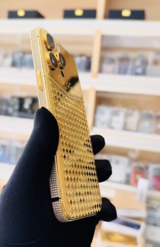 - Authentic iPhone 16 Pro Max 1 TB - Customized and electroplated with real 24K Gold, this iPhone has Diamond Zircon crystal encrustations in the housing and an engraved design. Personalized name engraving service included. Please let us know what name you need us to engrave after purchase.