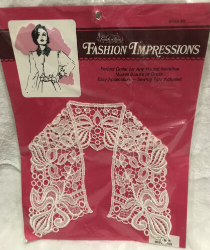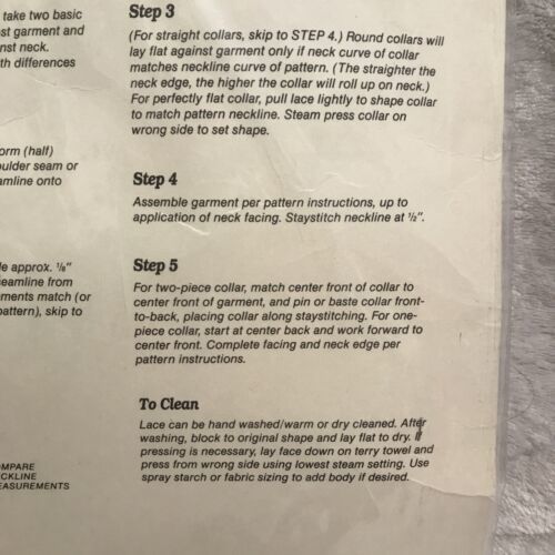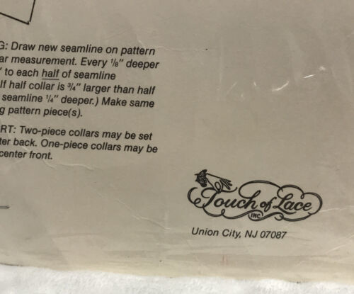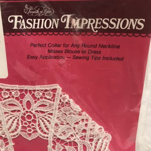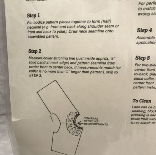 Vtg White Touch Of Lace Women’s Round Neckline Collar Dress Blouse Sewing Tip
