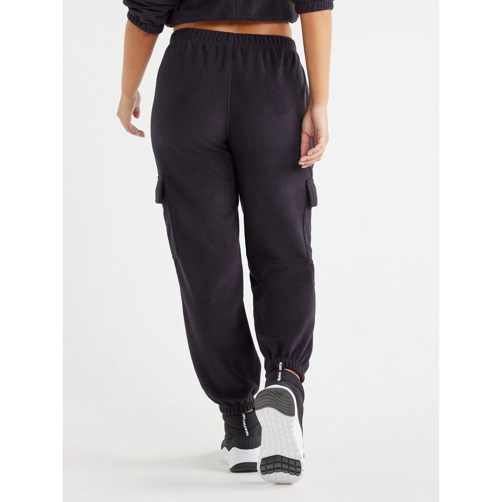 Love & Sports Women's Fleece Cargo Jogger Pants 28” Inseam, Black Size XXXL (22)