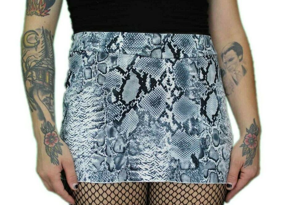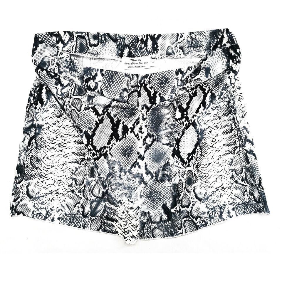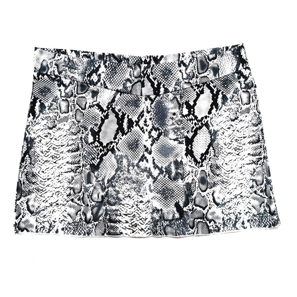 The high-waisted design smooths and enhances your silhouette, while the striking black, white, and gray snakeskin pattern adds an edgy, fashion-forward touch. Pair it with fishnets for a daring look or sheer stockings for an elegant, sultry vibe?perfect for casual outings, clubwear, or night-time glam!
