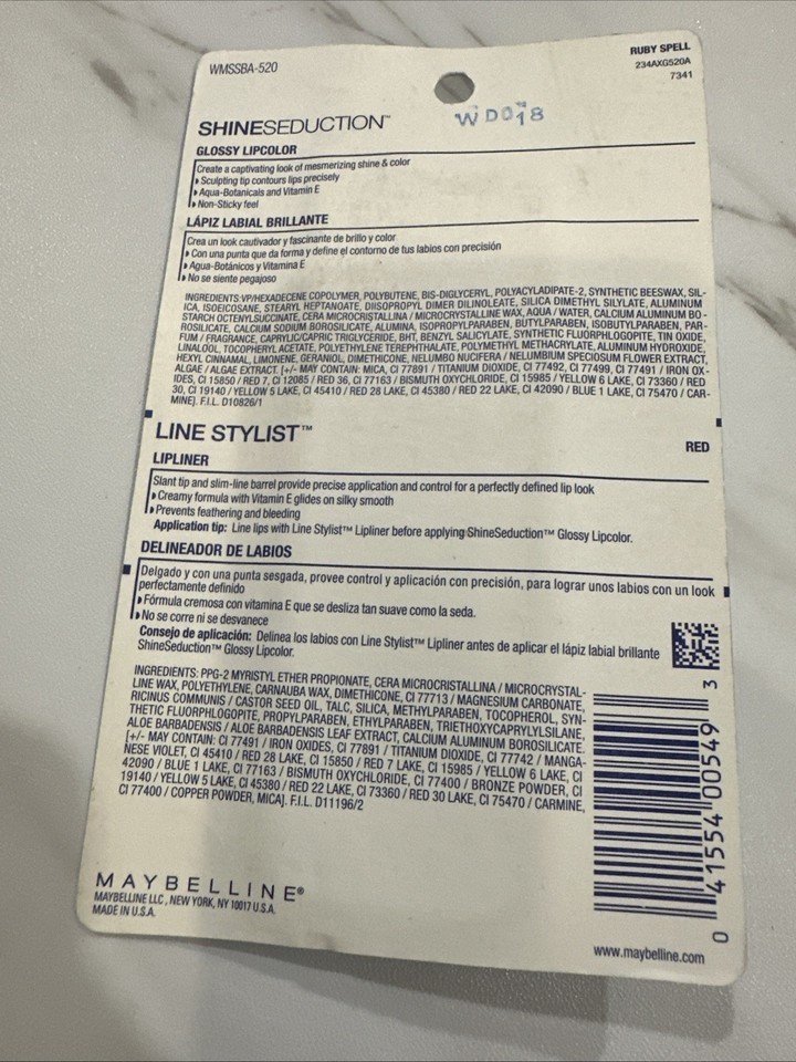 Maybelline SHINE SEDUCTION #520 Ruby Spell Glossy Lipcolor + Lip Liner