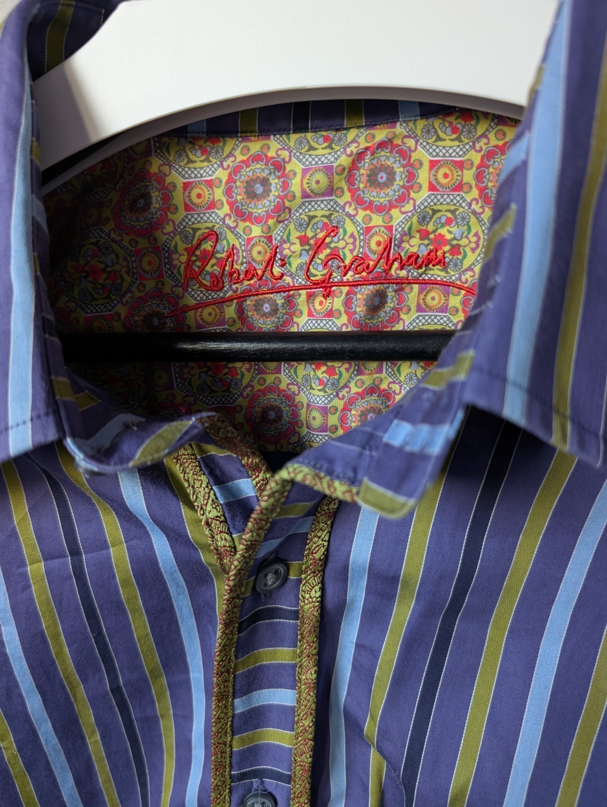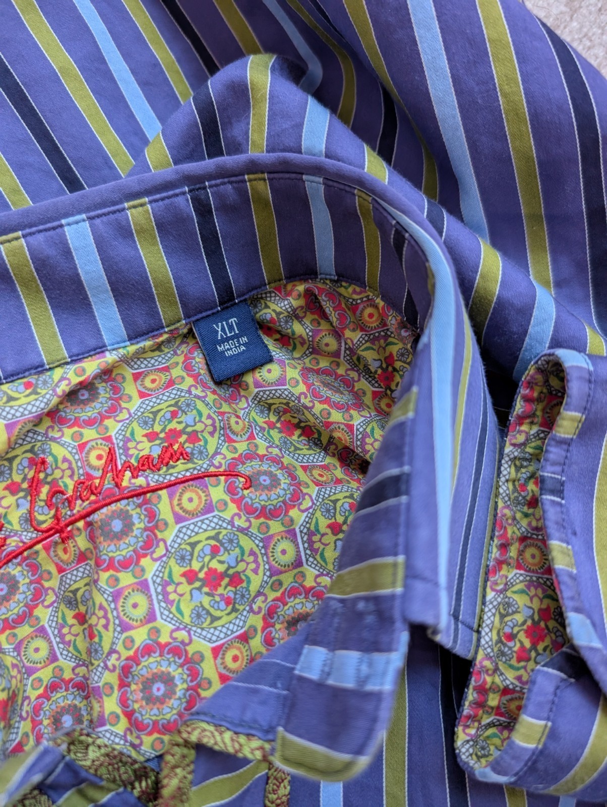 Robert Graham Men's Long Sleeve Striped Shirt Button Down Multi Trim XLT Tall
