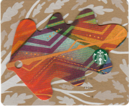 These mini Starbucks Cards come glued to a cardboard stock that has the TO: FROM: and $: fields. The Cards are cut in the shape of an oak leaf, and like last year each design has golden veins. Four (4) similar designs are available, each with a different dominate color. This is the Red.