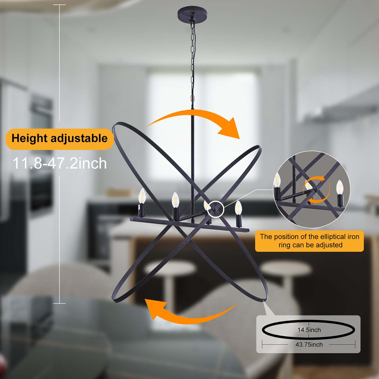 Elevate your space with the 4-light Atom Pendant, featuring two bands of matte black metal crafted into a striking orb shape. Inspired by bold modern art installations, this sleek fixture creates a dynamic and captivating lighting display.