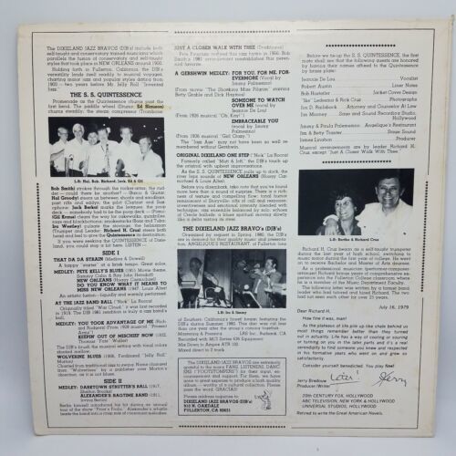 Richard H. Cruz and the DJB's DIXIELAND JAZZ BRAVOS Jazz LP Band Signed VG+