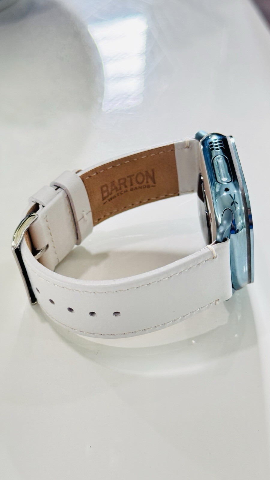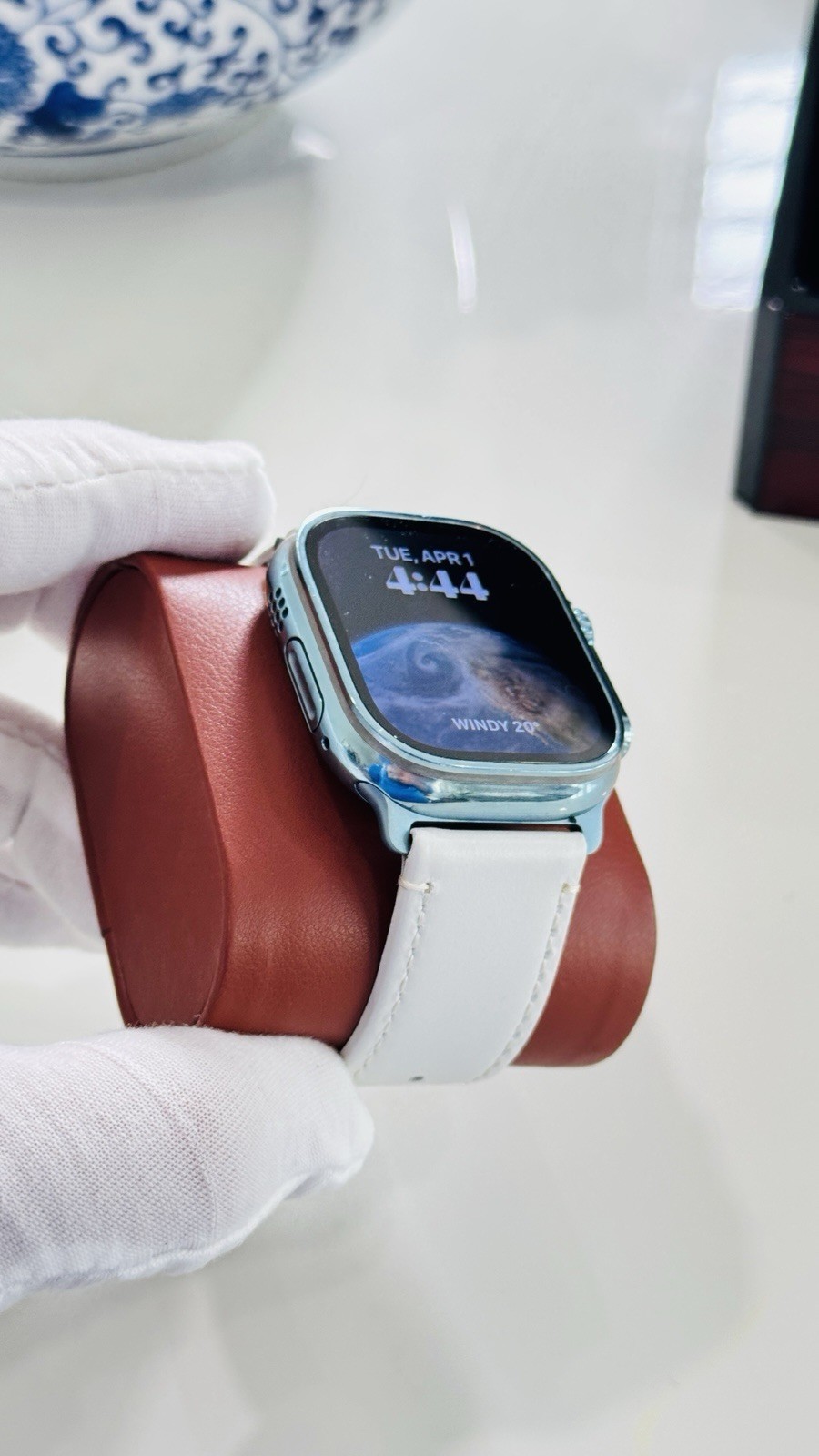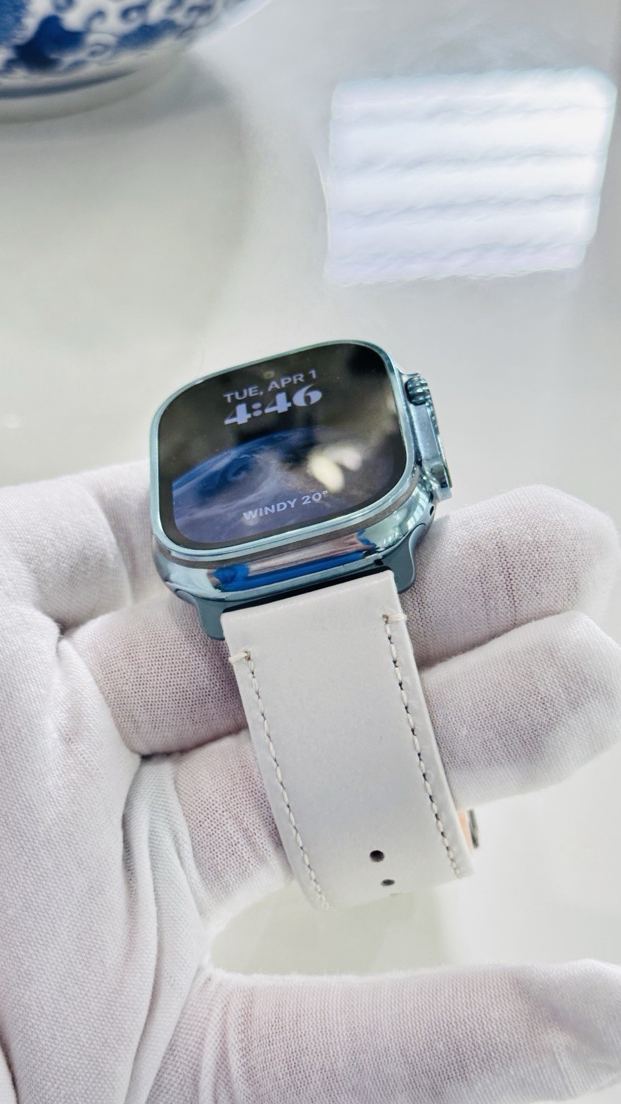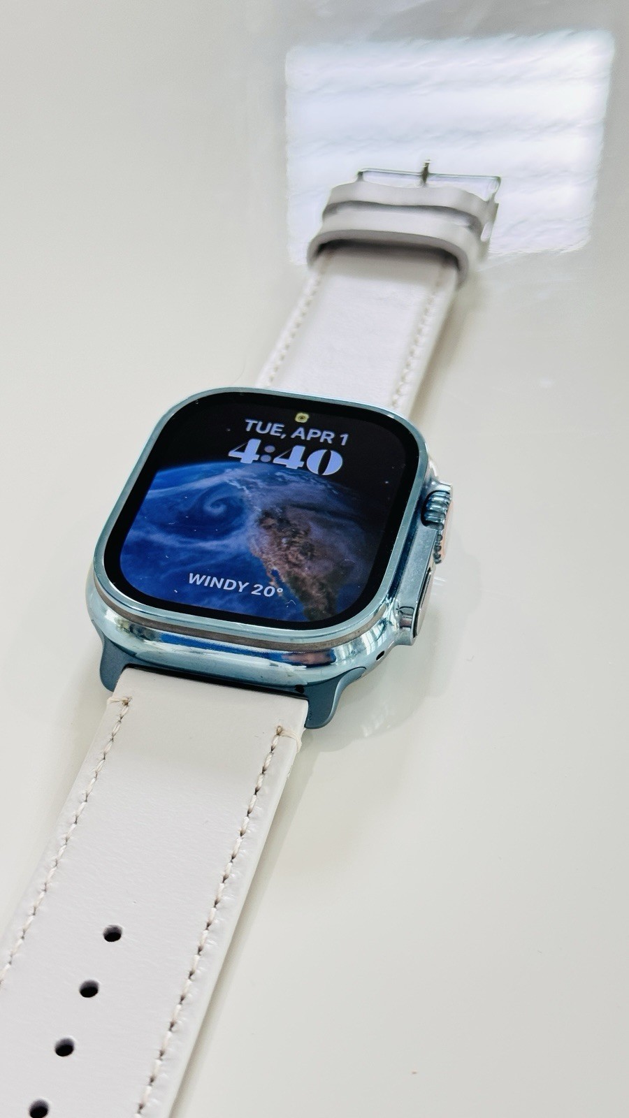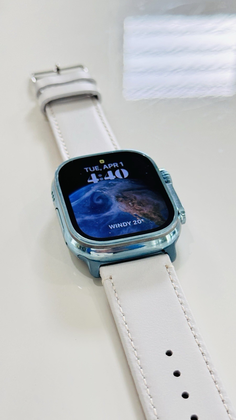 Custom Apple Watch ULTRA 2 49mm SKY BLUE Polished Anodized White Leather LTE GPS