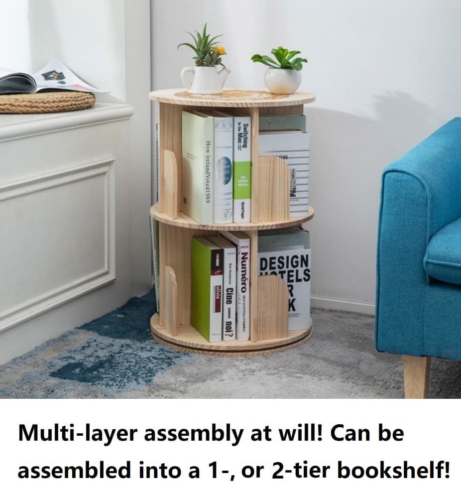 Heehee Wooden Rotating Bookshelf 360 Display Floor Standing Bookcase, 2-Tier