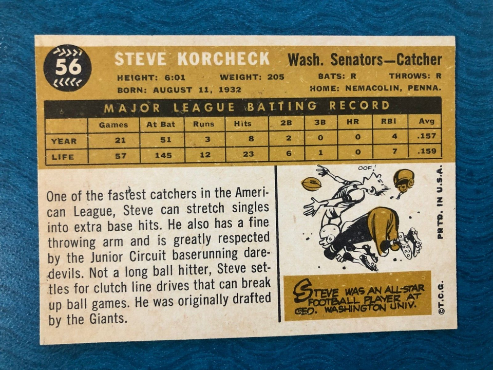 1960 Topps Baseball Card Steve Korcheck #56 and 50 similar items