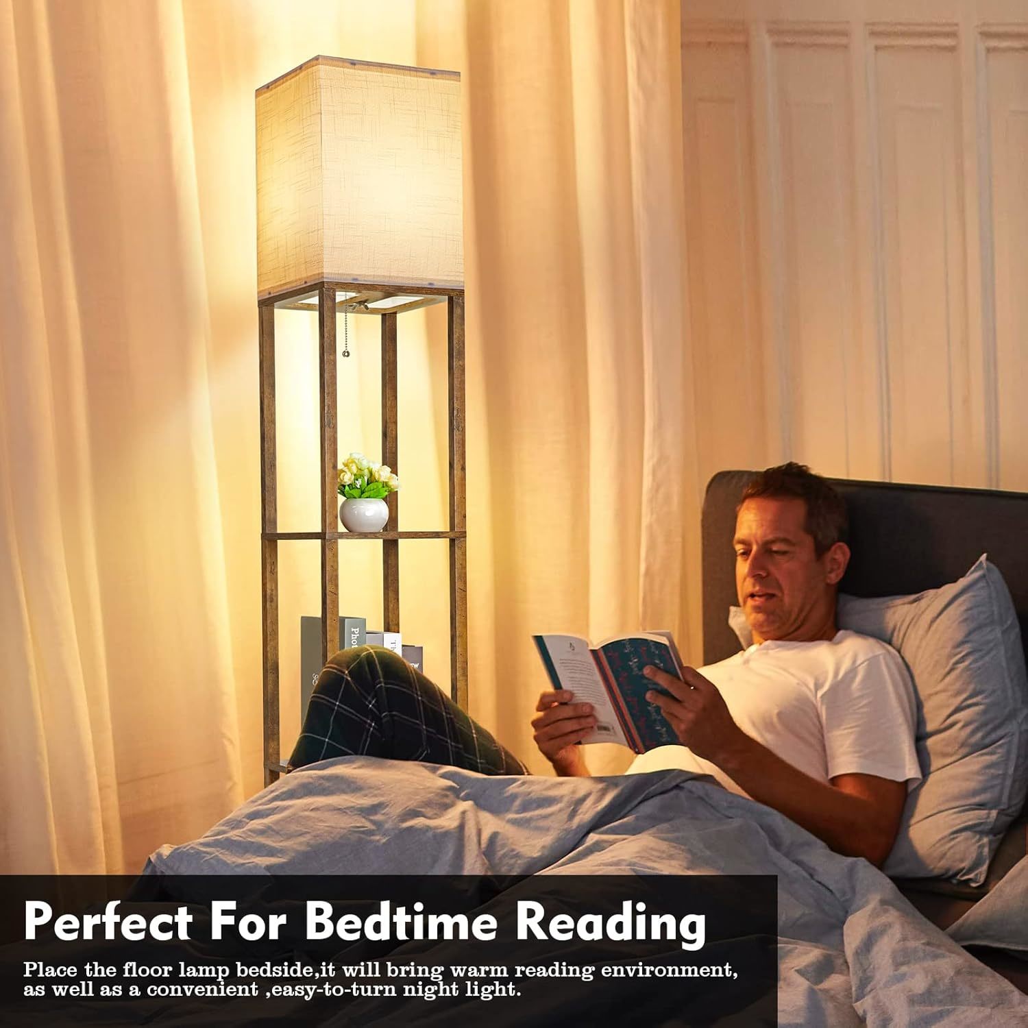 ???Triple Display Shelves Lamp?: RUNTOP 63inch high shelf floor lamp with 3 brown tiers provides a display and storage space for your valued family photo, plant, magazines and other sundries?which loads up to 50 pounds max. It's convenient and practical in your bedroom, guest room, or office. ???3 Color Temperature Floor Lamp?: You can control the brightness of your floor lamp for bedroom with the ability to adjust color temperature(2700K, 4000K, 5000K ) by pulling the chain. To adjust your favorite atmosphere of your space. ???Smart Floor Lamps Design?: This floor lamp with shelves is equipped with an E26 base compatible with various bulbs. A 8W A19 LED bulb included.CRI 80+ of the bulb can show the color of the object more realistically. When you adjust the standing floor lamp to the brightness, the last mode will be saved you set, which is convenient for your life. ???Premium Fabric lampshade?This floor lamp for living room is designed with off-white cloth lampshade.The simple and stylish design complements the medieval or modern decoration style, which creates a elegant and comfortable atmosphere to your study, den, dorm room, foyer. ???Easy to Assemble? The modern floor lamp is easy to assemble within 10 minutes, no tools needed.Easy to install and powerful in functionality, so it can be used as a corner lamp to decorate your living room or as a nightstand with lamp to bring you life convenience.