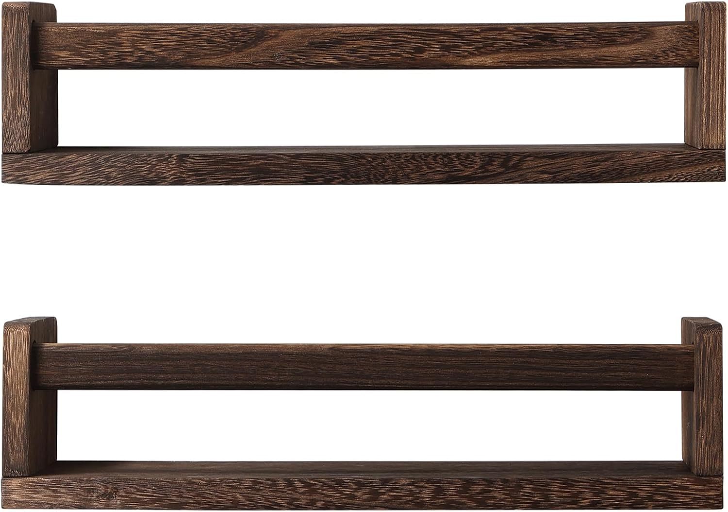 ATTRACTIVE WALL MOUNTED BOOKSHELF: The nursery book shelves are perfect for a variety of decorative styles, there are two installation and display forms, turn any kids room into an elegant storage and display space. This multi-functional kids book shelf is perfect for displaying your child?s toys, books, and other small items. SAFE AND STURDY CONSTRUCTION: This kids book shelf is made of solid wood to guarantee sturdy and durable, the safety rail ensures that the item stored on the shelves are safe and secured. The nursery wall shelf is designed to save floor space and can be used as a stand for anything you want to hang on the wall. EASY TO INSTALL: Nursery floating shelves are very easy to install on your wall, we take DIY as part of the creative design of floating shelves. Everything you need to install the shelves is included in the package along with an easy to follow instruction manual. GREAT GIFT IDEA: Our bookshelf for kids looks amazing in any room, can easily be used as rustic bathroom decor, nursery decor, or book shelf organizer for baby nursery room decor. Give this superb home decor piece to your friends and family members who love to keep everything organized. What You Get: As a professional floating shelf manufacturer. We?re offering you a durable, rustic, and functional floating U shelves storage rack. You'll get two well-designed shelves of the same size, all necessary hardware and installation instructions. Dimension:16.5L x 3.5H x 4.0W inches. Products and screws have been upgraded.
