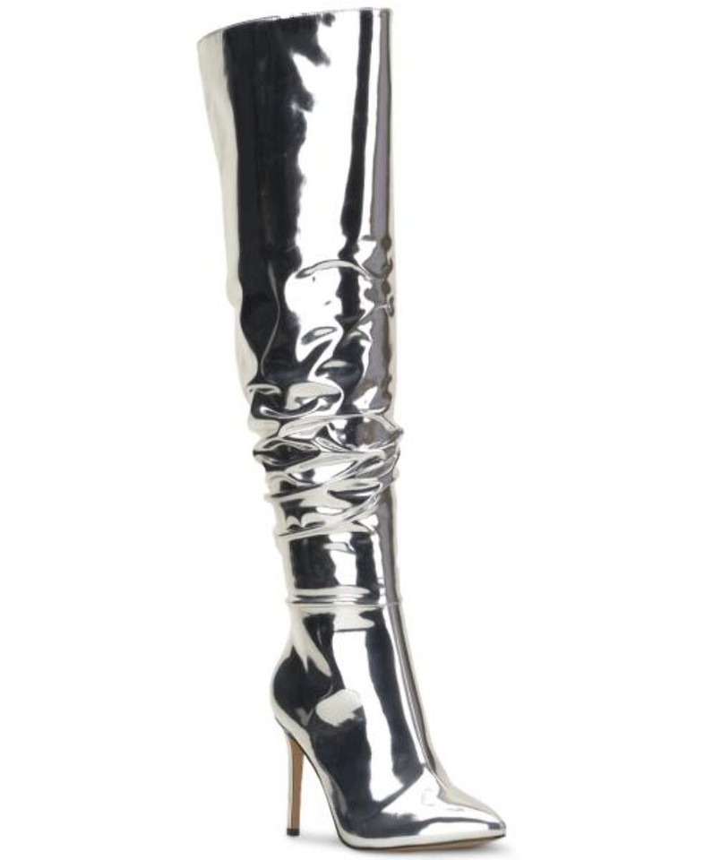 I.n.c. International Concepts Women's Iyonna Over-the-Knee Slouch Boots - Silver Patent