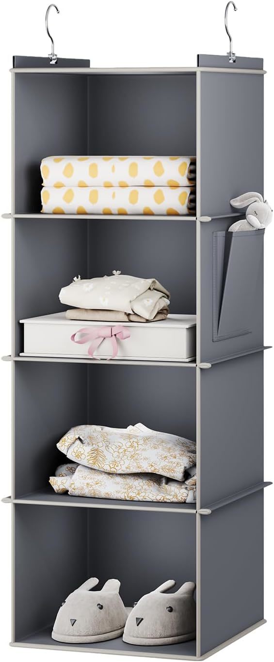 Hanging Closet Organizer, 4-Shelf Closet Hanging Storage Shelves, Grey