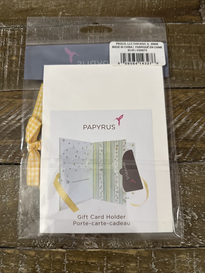 The Papyrus Gift Card Holder is a stylish and practical way to present a gift card. This product by Papyrus includes an envelope for easy gifting. Perfect for any occasion, this gift card holder adds a touch of elegance to your greeting or gift presentation.