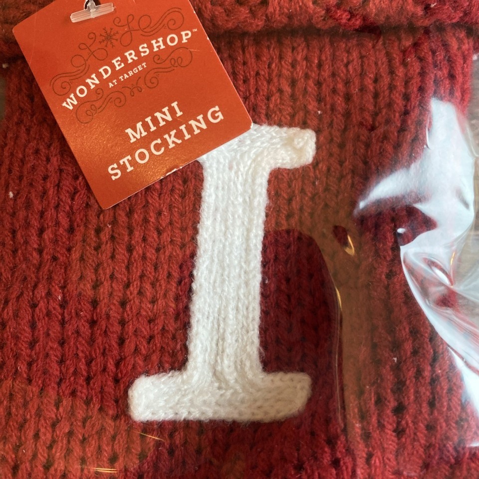 New Wondershop Red Mini 8” Christmas Knit Stocking Initial Letter “I"