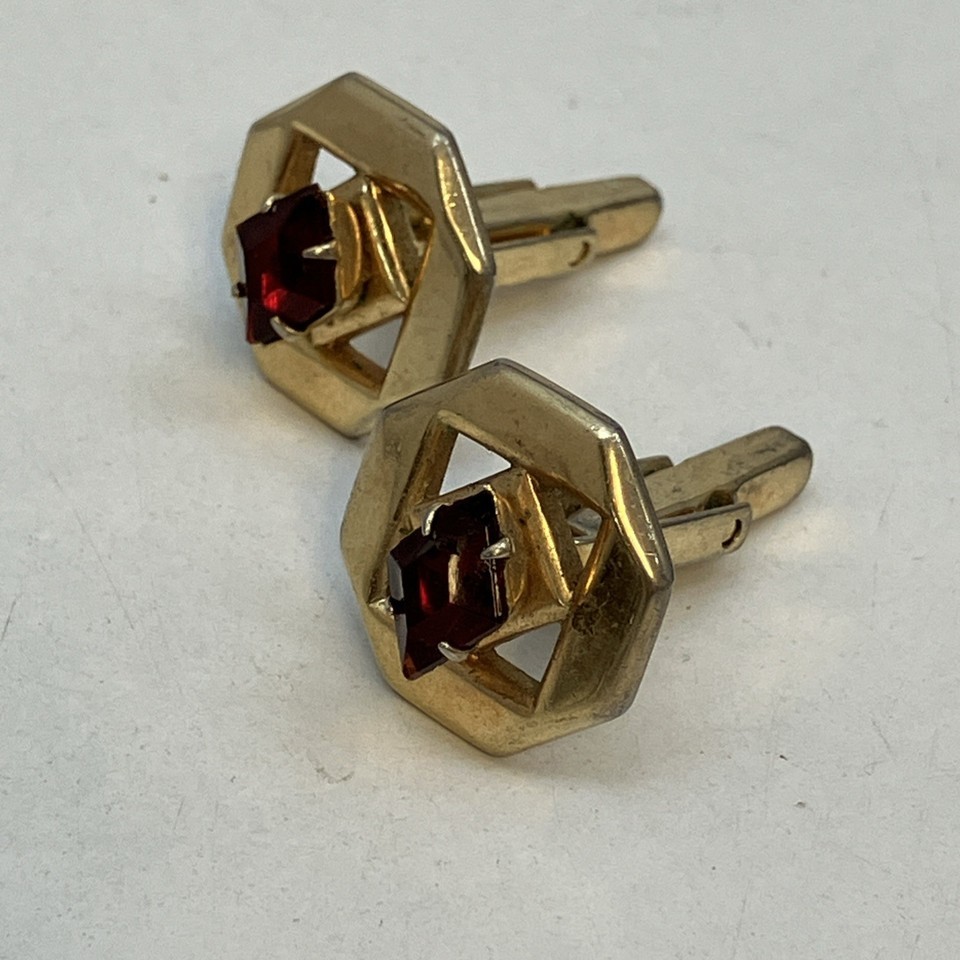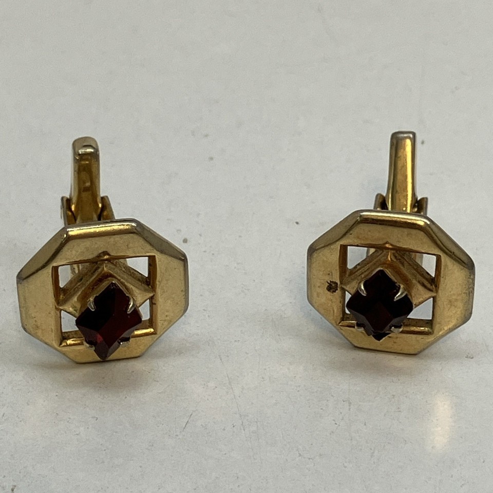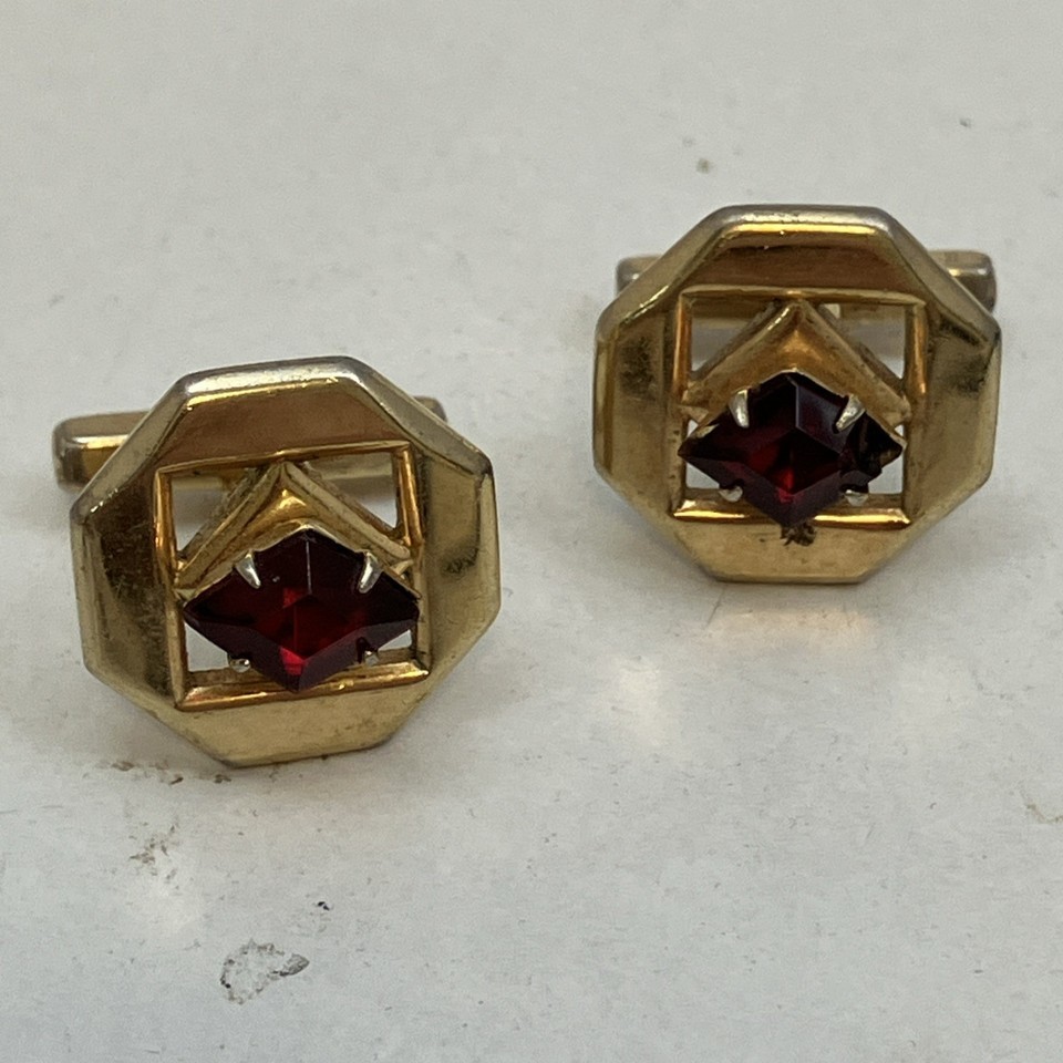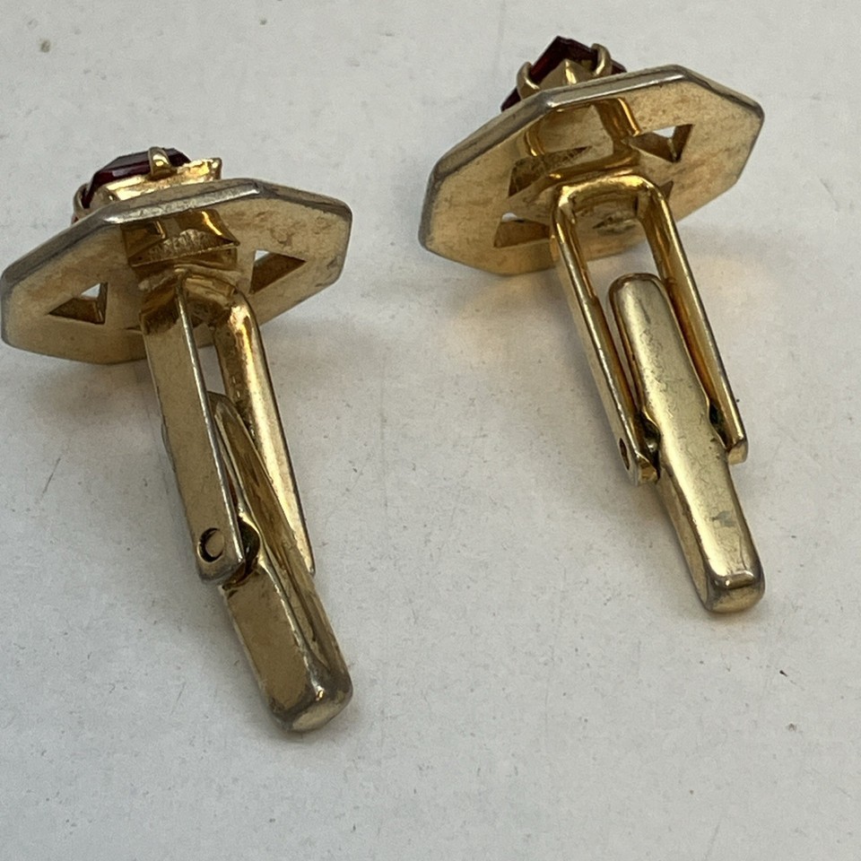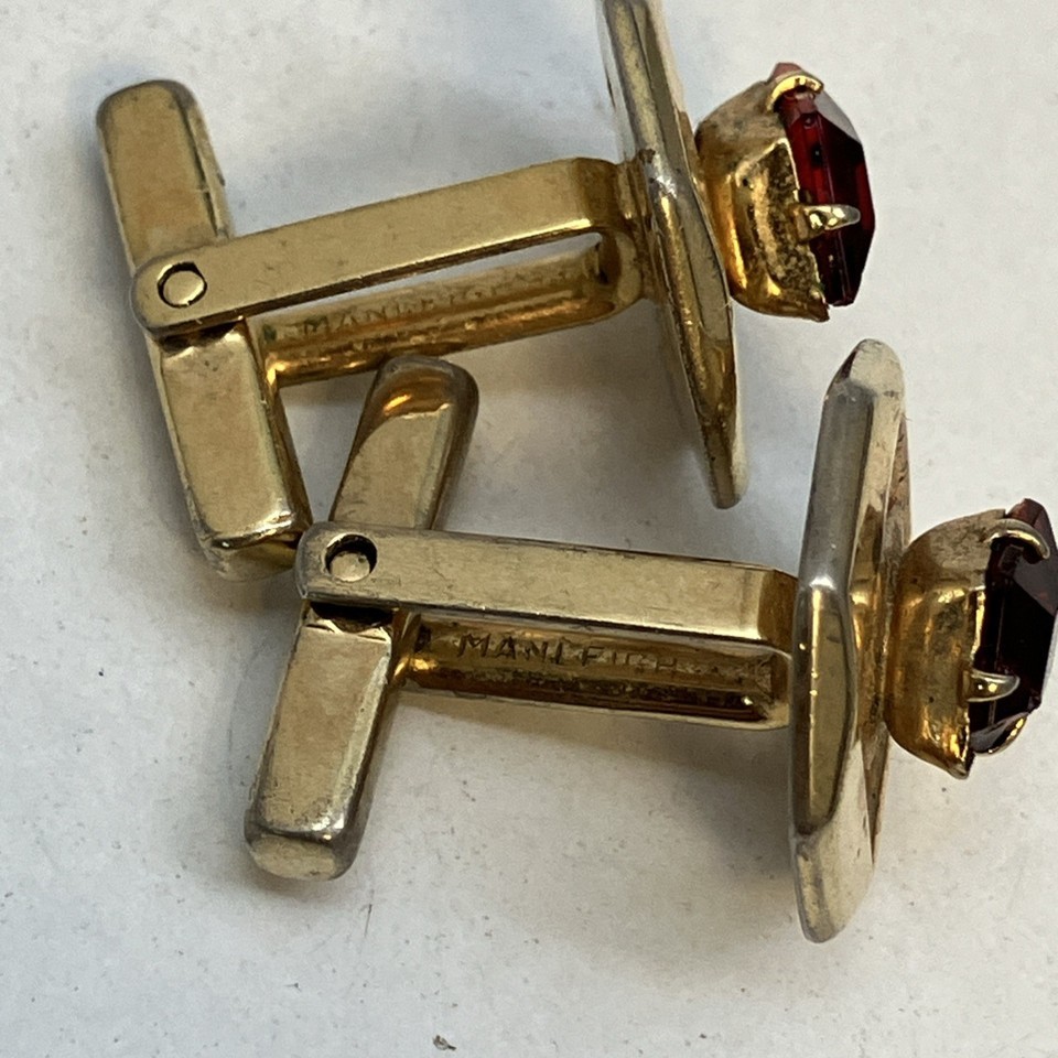 VINTAGE PAIR MANLEIGH GOLD TONE RED STONE CUFF LINKS