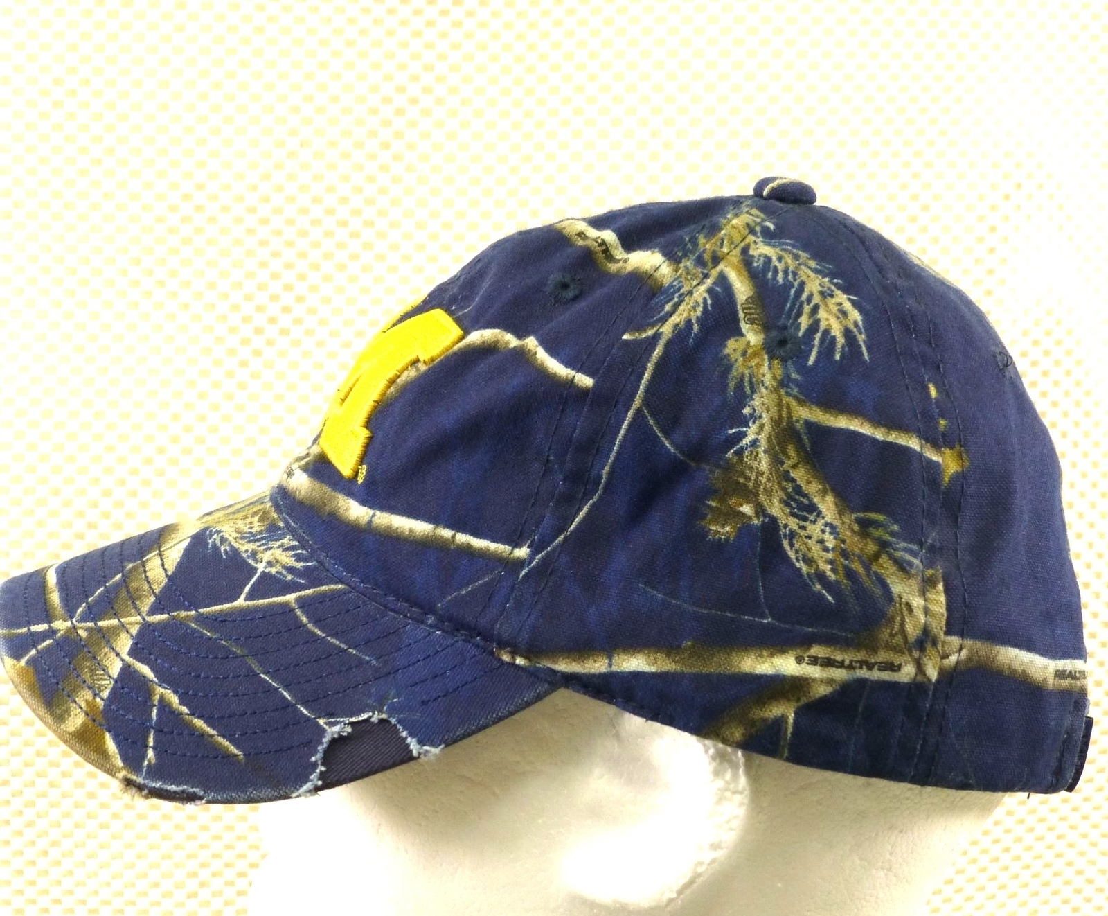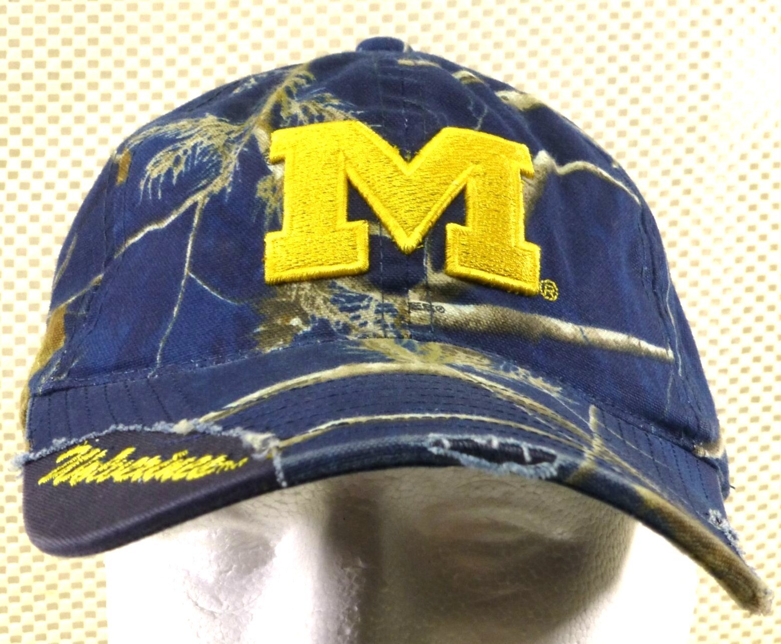 University Of Michigan Wolverines Blue Camo Distressed Baseball Cap Embroidered