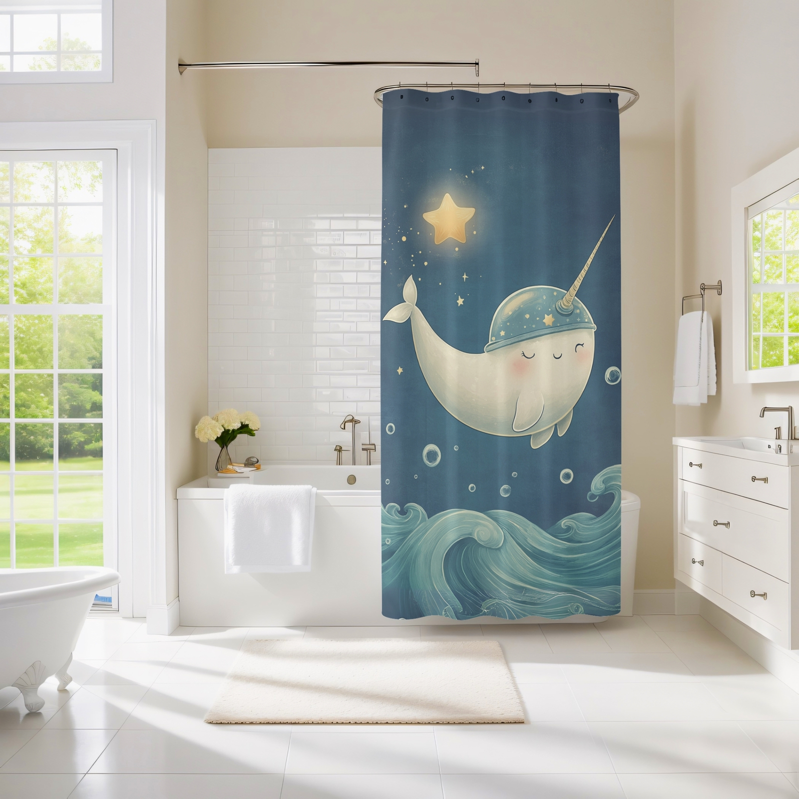 Neptune the Narwhal Shower Curtain by Dancing Littles Jungle