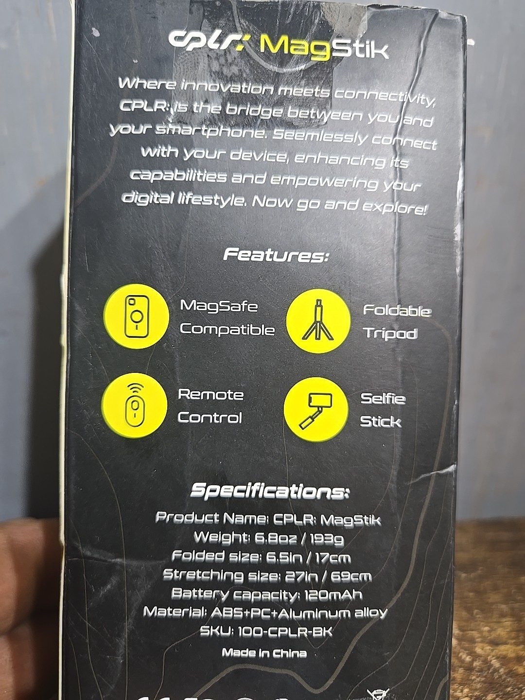 The CPLR: MagStik Magnetic Selfie Stick Tripod Stand is made of lightweight and flexible material, making it easy to carry around and adjust to your desired angle. It has a magnetic mounting type that securely holds your phone in place, and a matte design/finish that adds a touch of sophistication. This selfie stick is perfect for anyone looking for a hands-free and hassle-free way to take great selfies.
