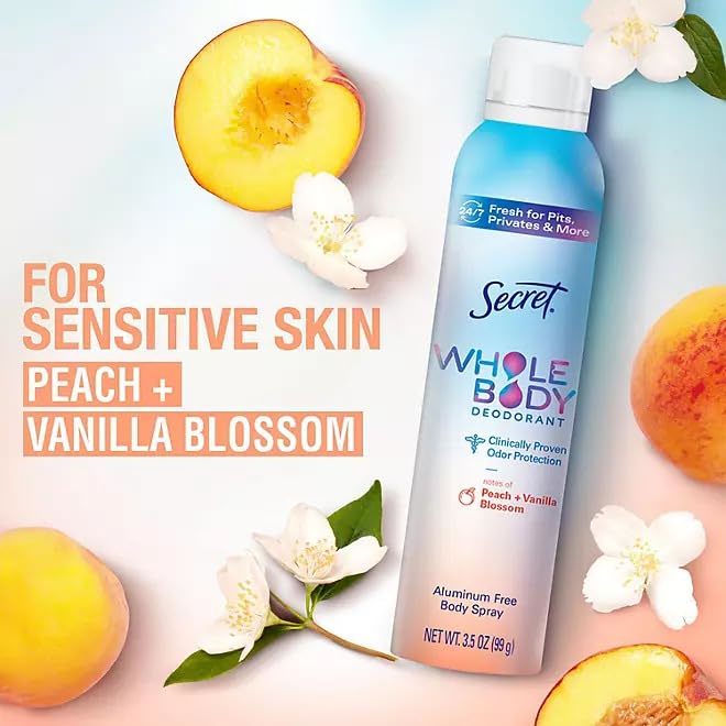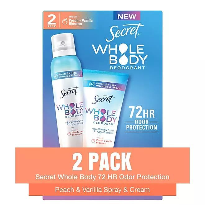 Secret Whole Body Deodorant Duo, Peach & Vanilla Blossom, 2 pk.