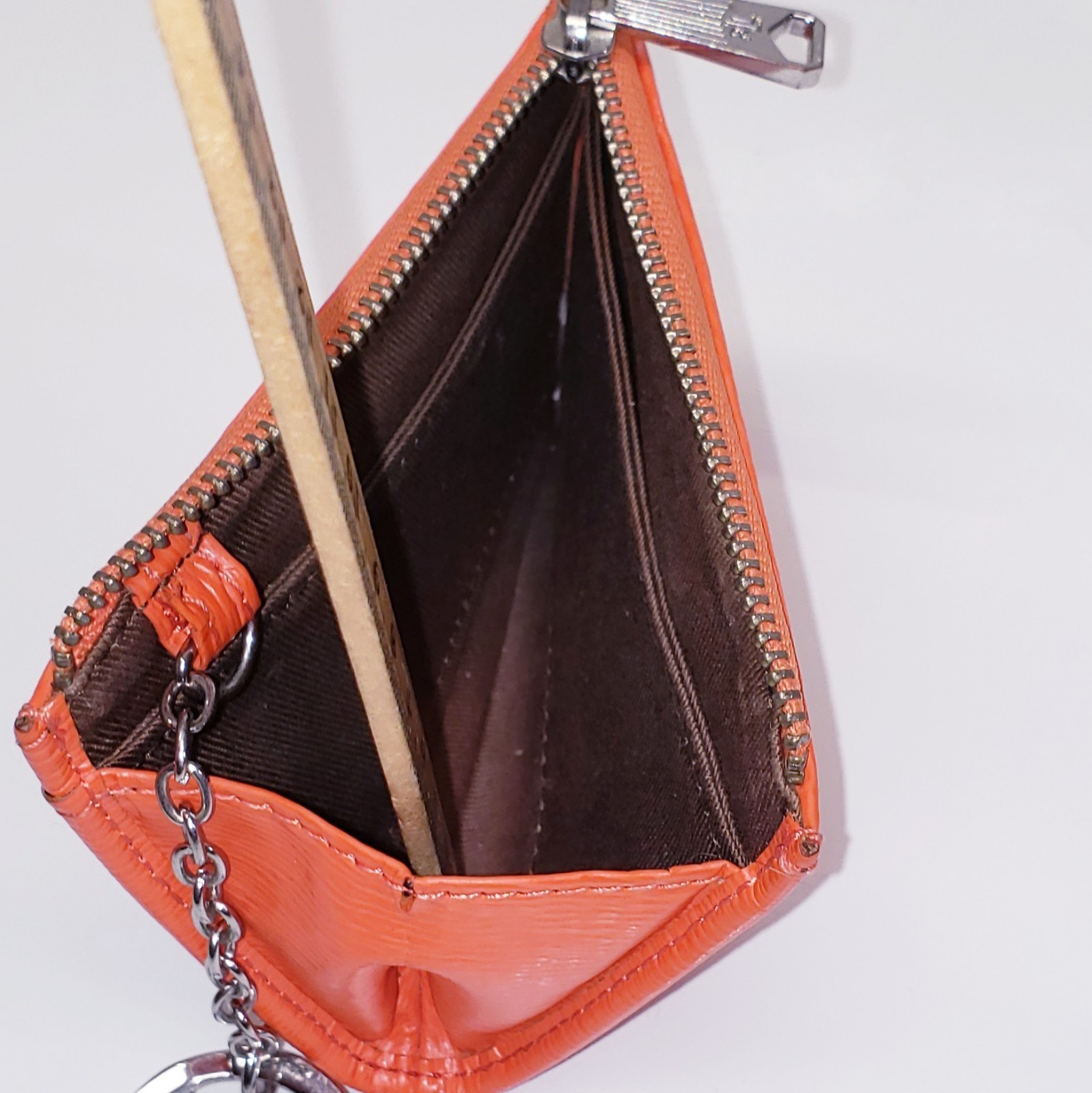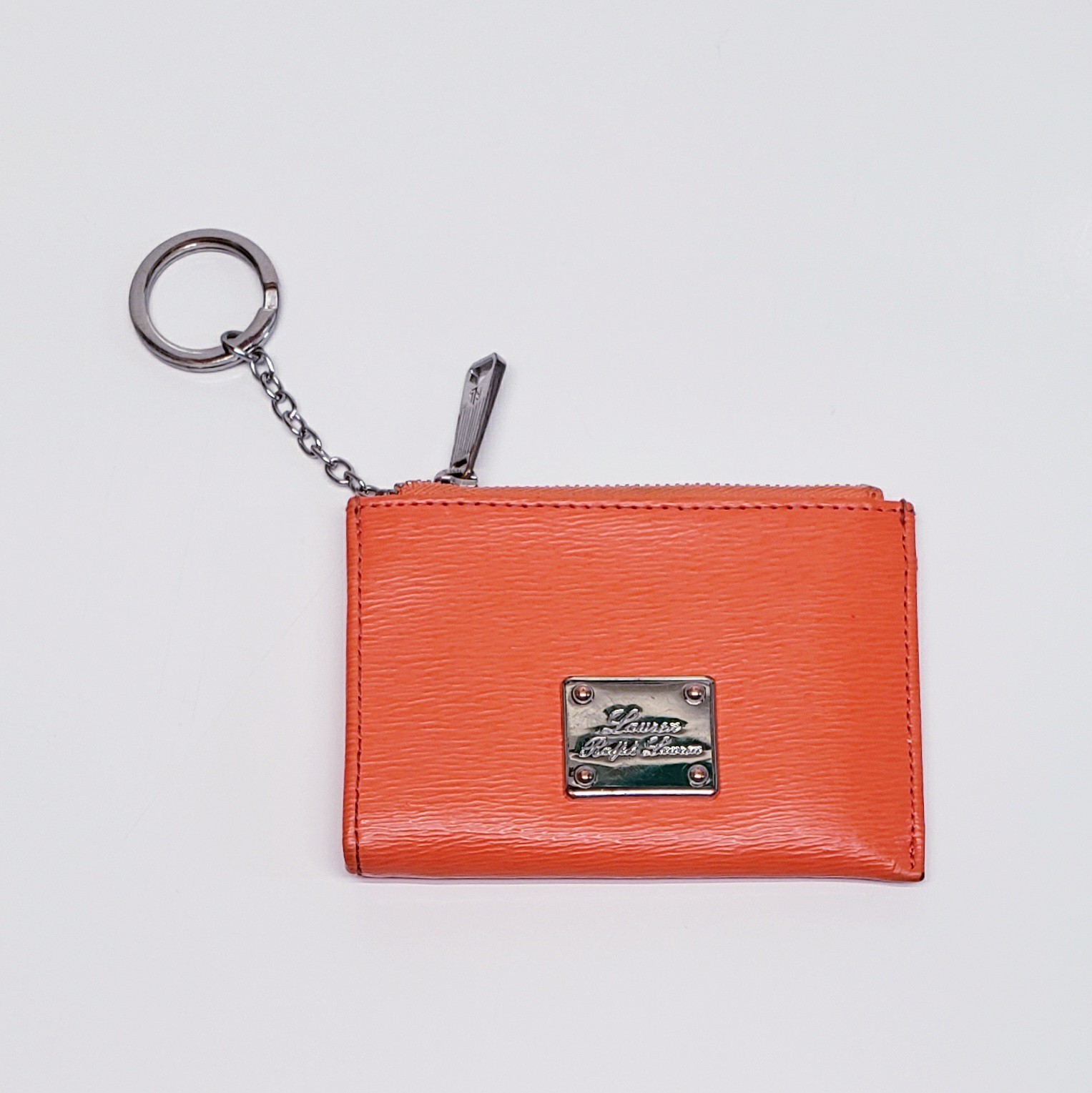 Lauren Ralph Lauren Orange Leather Silver Key Chain Coin Purse Zip Wallet Used
