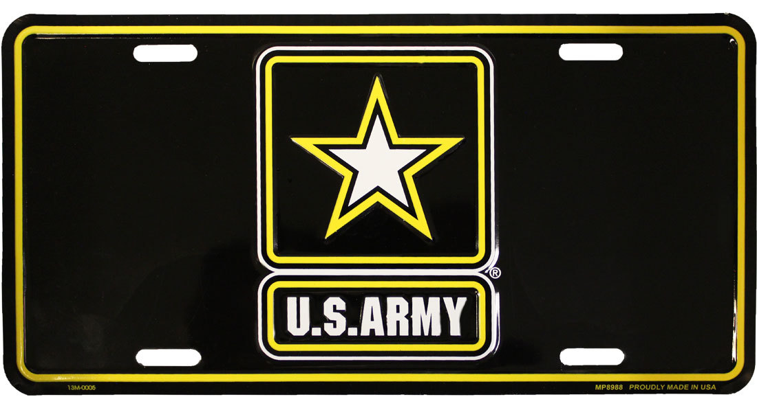 Add a touch offlair to your home, office, garage, or on the dashboard of your vehicle with our eye-catching 6" x 12" embossed aluminum license plate! Crafted in the USA from durable aluminum, this lightweight novelty Armyplate features vibrant colors,a glossy finish, and four bore holes for easy display. This is a novelty license plate and is intended for decorative use.