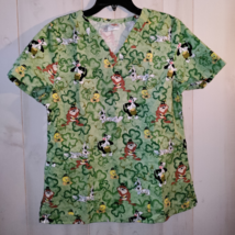 EXCELLENT WOMEN LOONEY TUNES ST. PATRICK'S DAY SHAMROCK PRINT SCRUBS TOP SIZE S