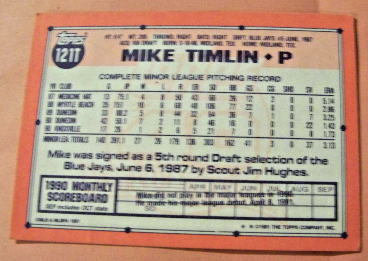1991 Topps #121T Mike Timlin Toronto Blue and similar items