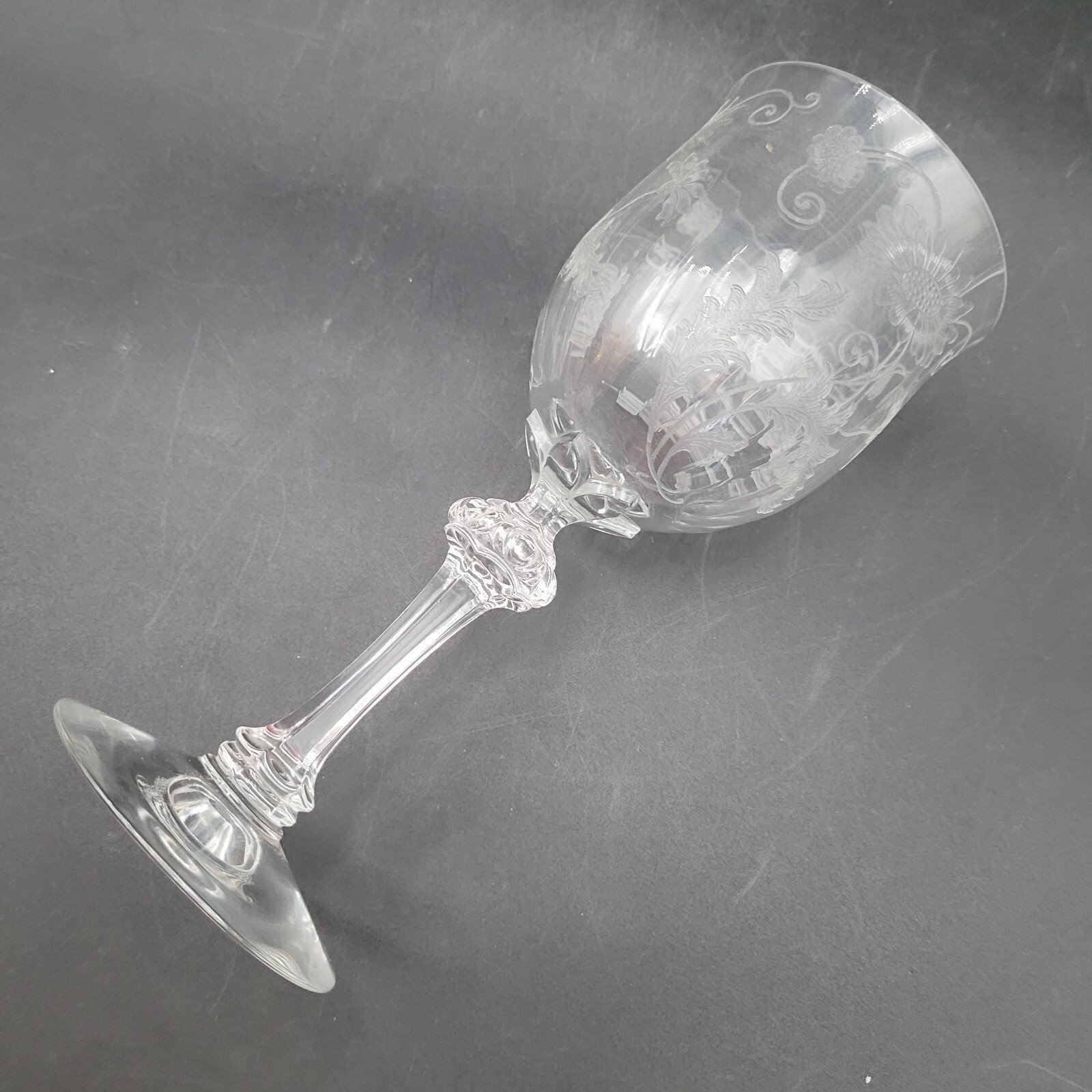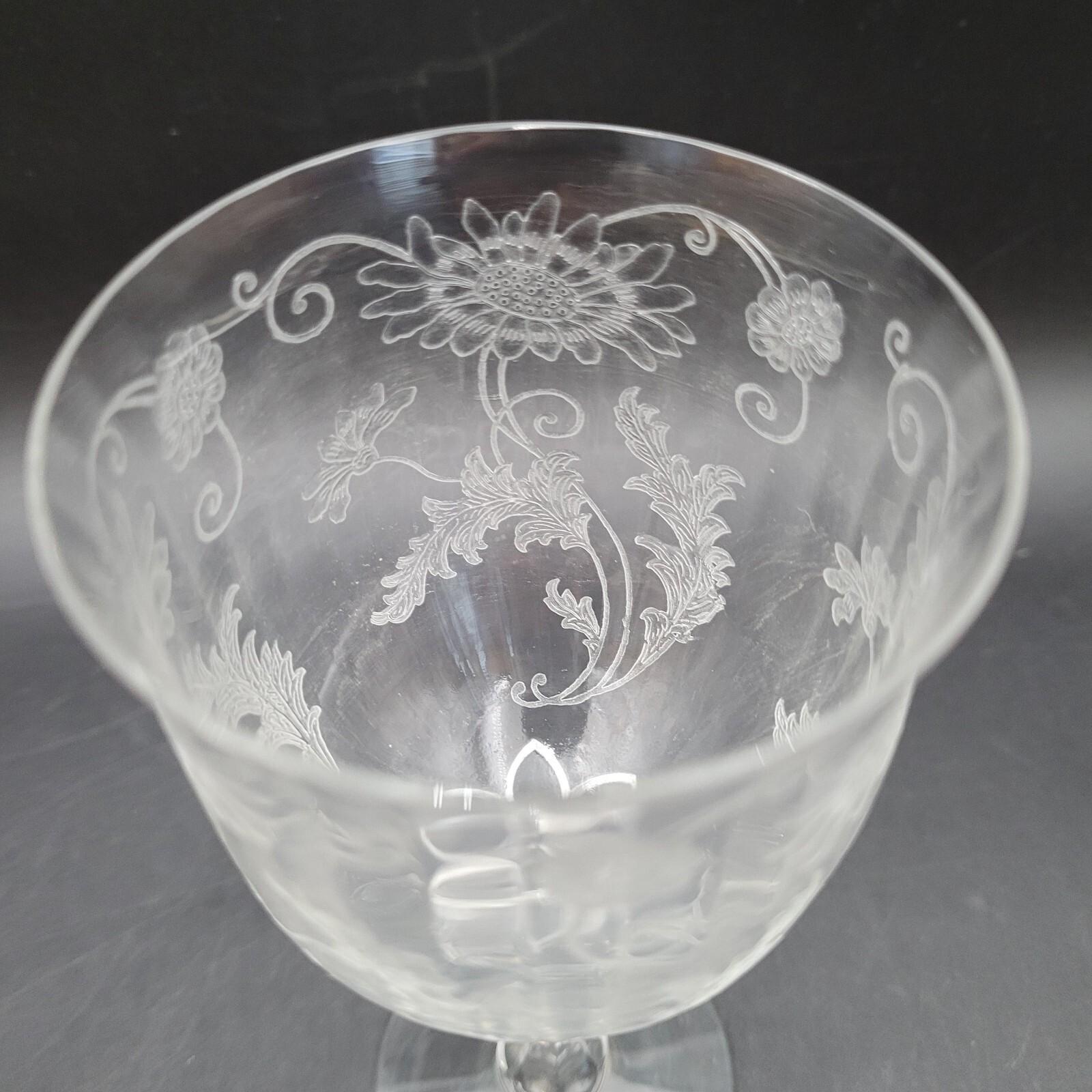 Rare HTF Fostoria Crystal Daisy 6013 324Optic Etched Water Wine Goblet Glass(es)