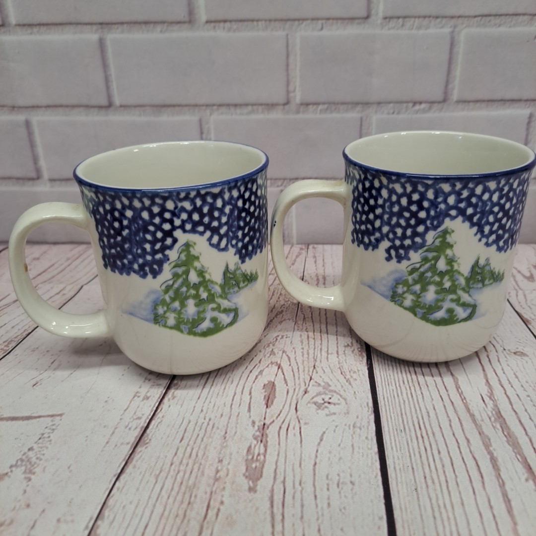 VTG Thomson Pottery Snowman Cups Mugs Christmas Winter Snow (Set Of 2)