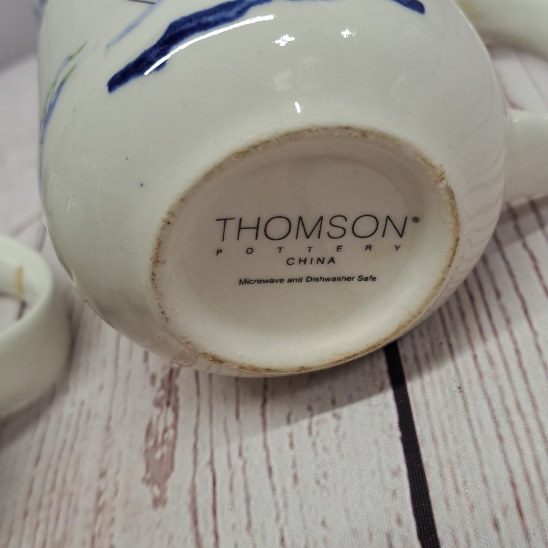 Add some festive cheer to your winter dining with these Thomson Pottery Snowman Cups. The set includes two ceramic coffee cups that feature a snowman design, making them perfect for a Christmas or winter-themed meal. These cups are both stylish and functional, with a glossy finish and dishwasher-safe material.