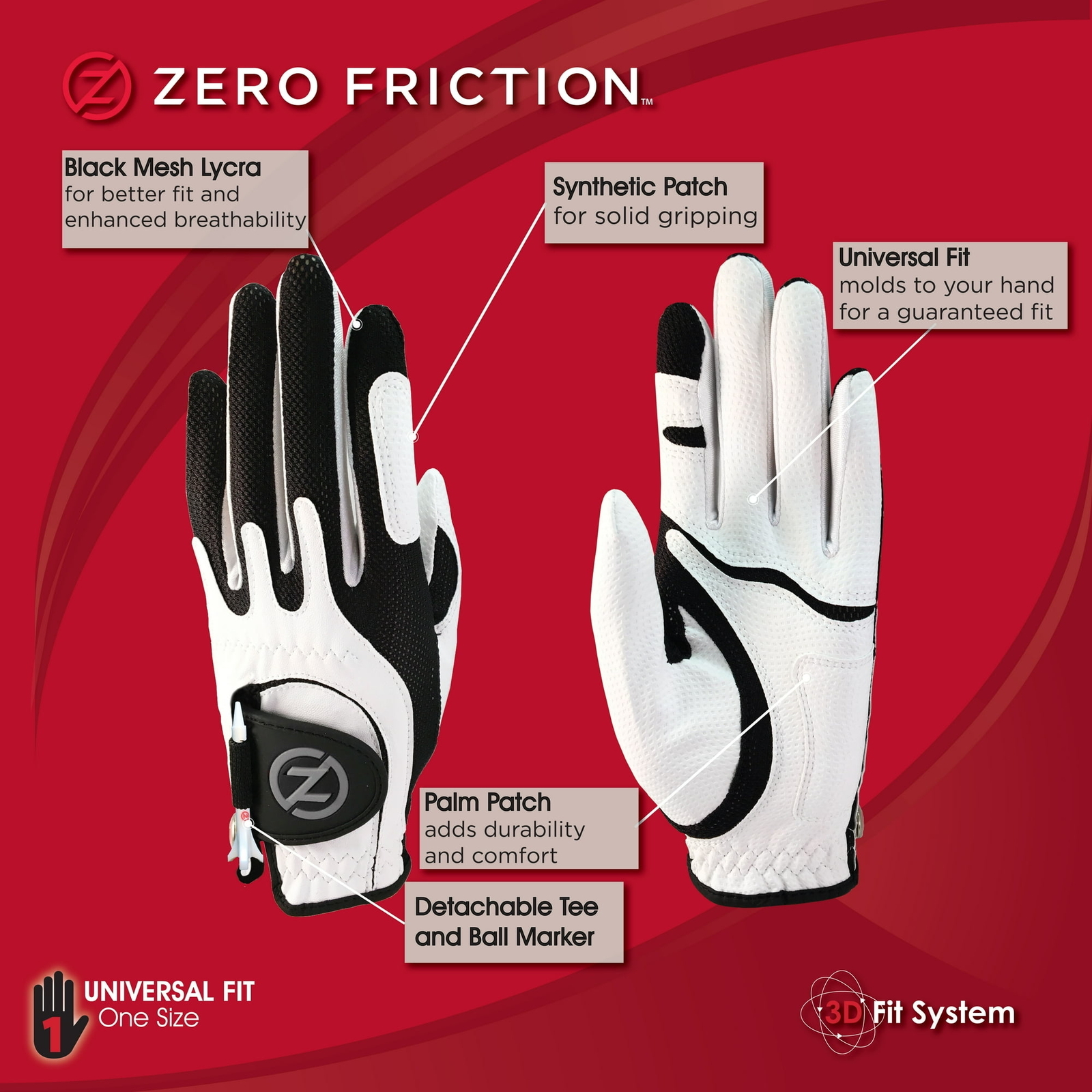 Zero Friction Junior Performance Synthetic Golf Glove Universal-Fit White