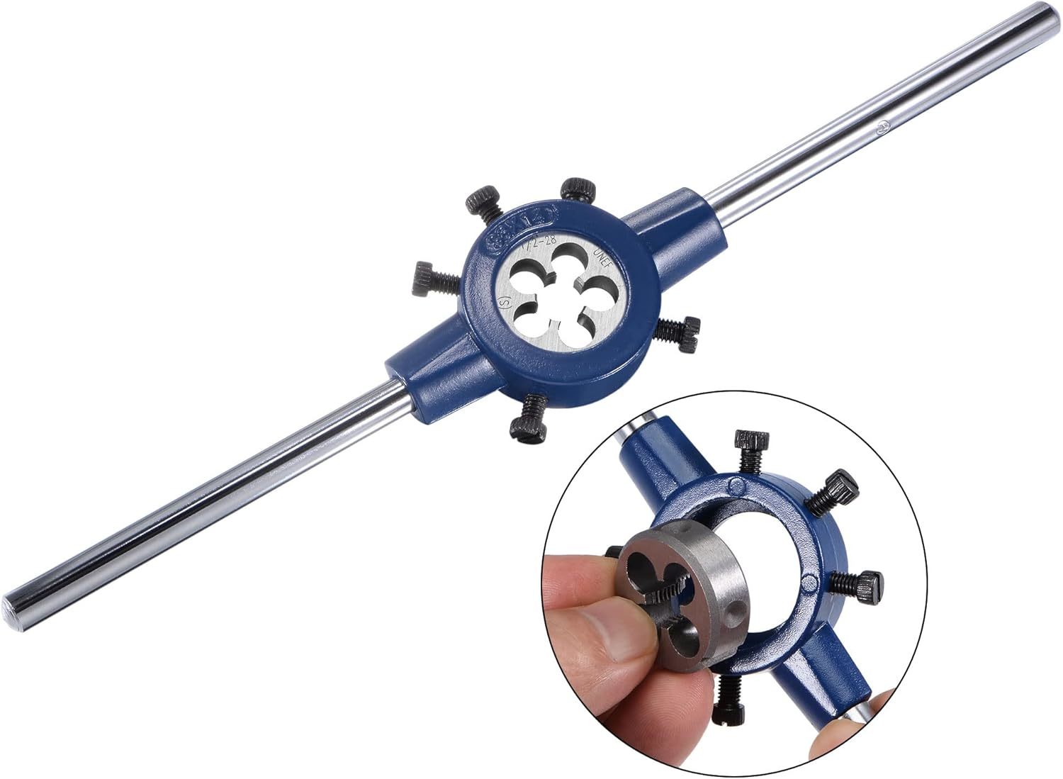Uxcell 1/2-28 Unef Tap And Die Set With 38Mm Round Die Stock Handle Wrench, High