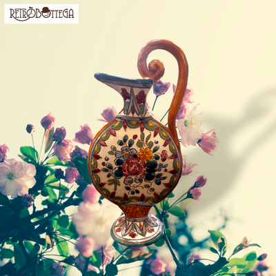 Anfora a forma piatta con fiore in terracotta fatta a mano e decorata...