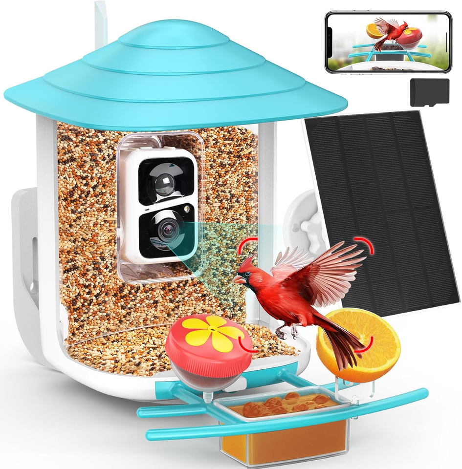 Smart Bird Feeder with Camera 2K HD, Solar Panel 32GB Card 4-In-1
