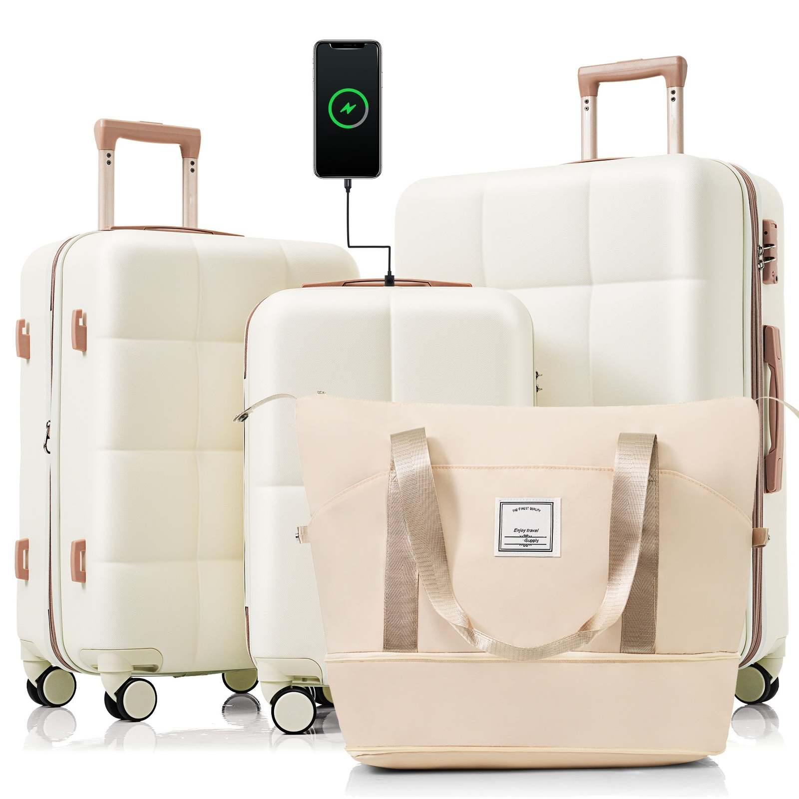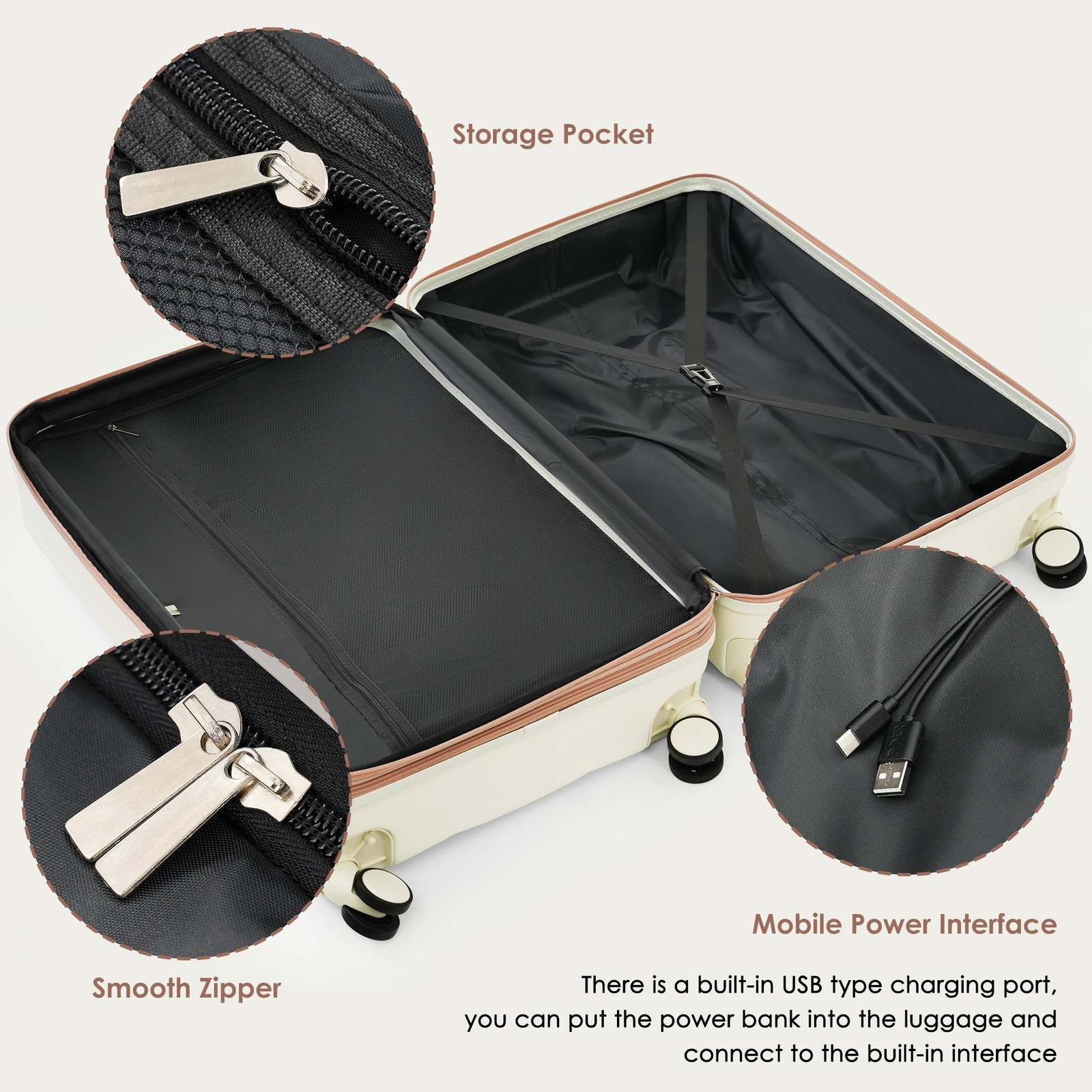Expandable Beige Luggage Set w/ USB & and 49 similar items