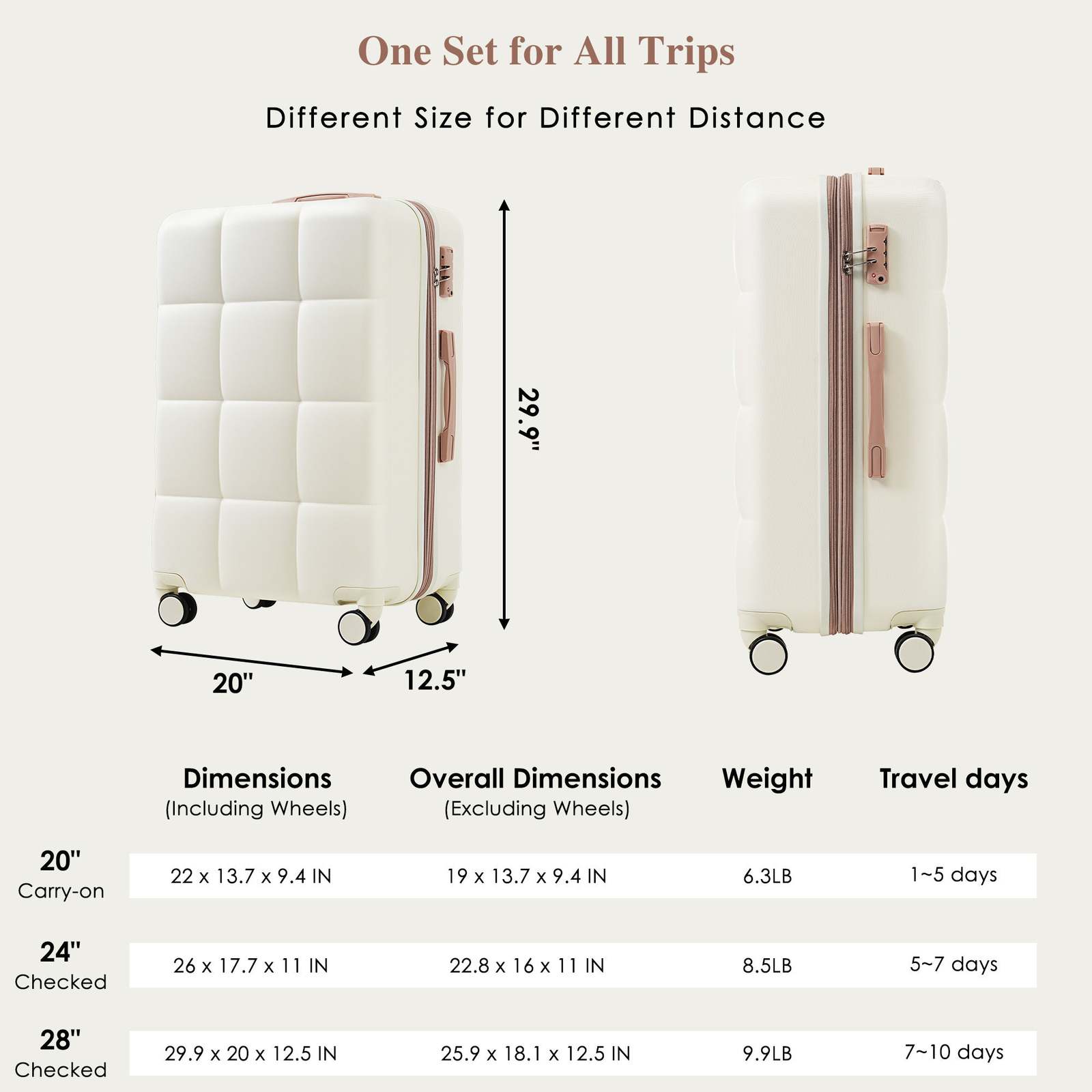 ?High Quality Luggage Sets?Made from extra strong ABS material, which is lightweight and extremely durable. Features textured finish to prevent against scratches,keeping lightweight luggage set beautiful trip after trip.