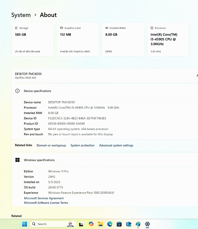 Dell Optiplex 9030 23" AIO i5-4590s 3.20GHz 8GB 128GB SSD 500GB HDD Win 11 Pro