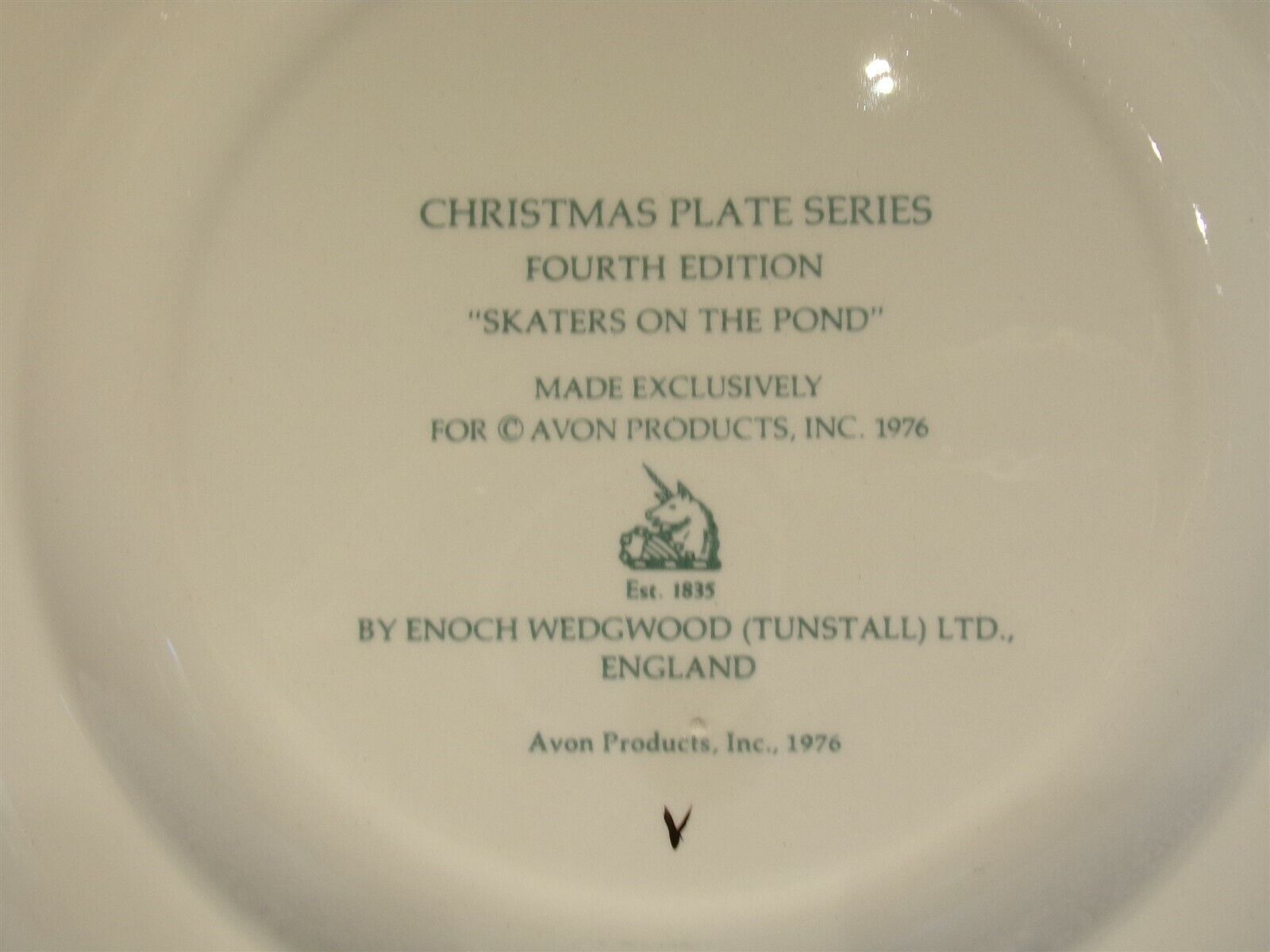 Skaters on the Pond Christmas 1975 Avon Plate by Enoch Wedgwood w/o Box