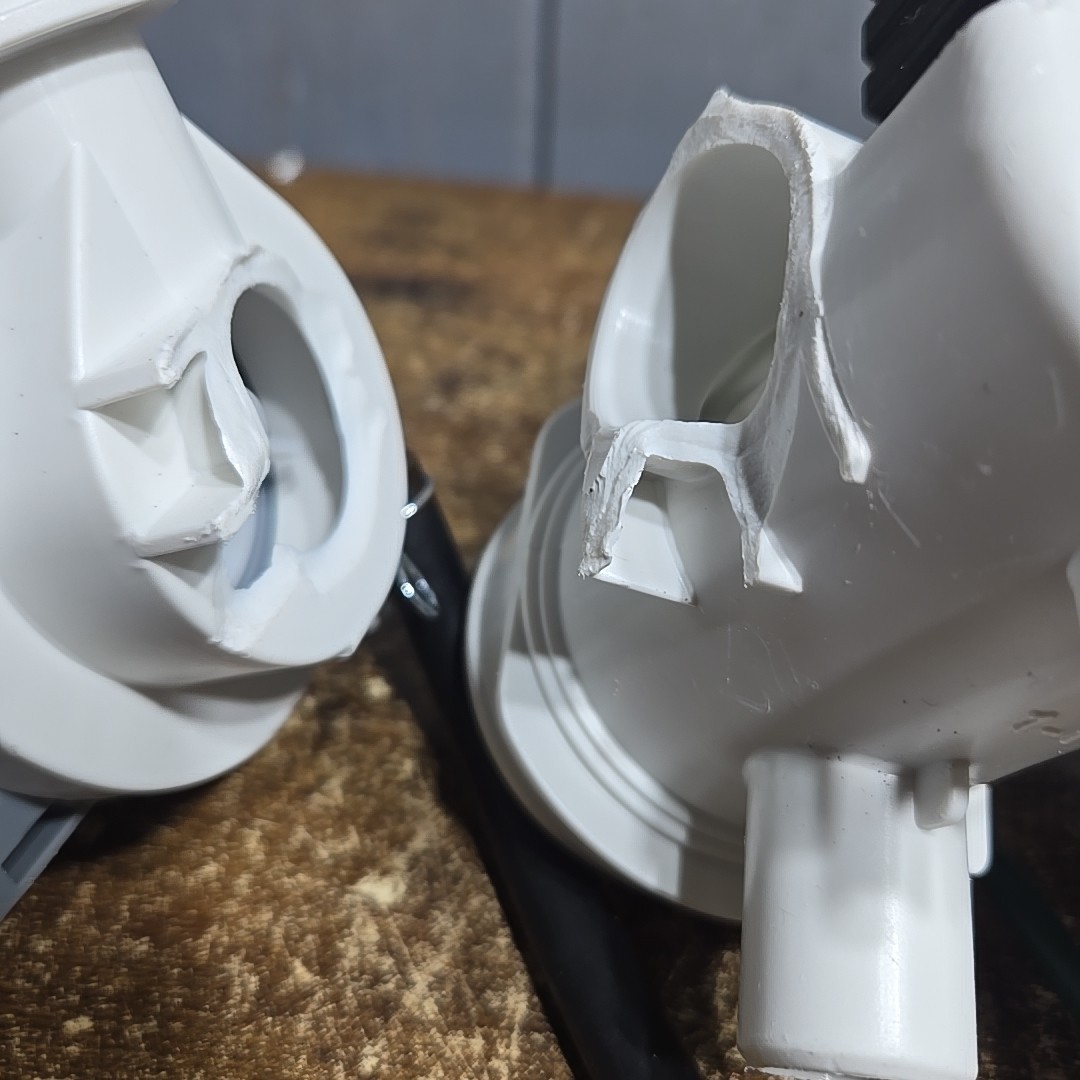 the plastic that connects the 2 motors is broken. could possably swap parts from your existing pump .