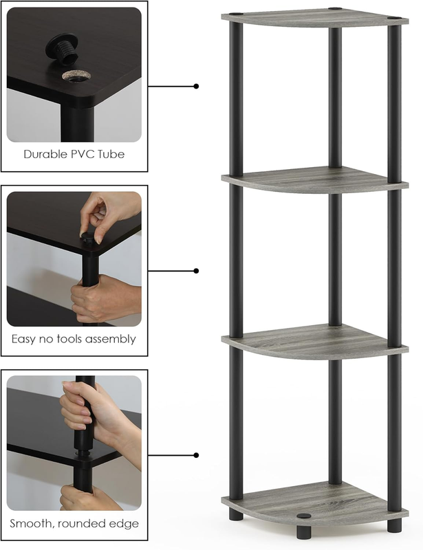 Turn-N-Tube 4-Tier Corner Display Rack Multipurpose Shelving Unit, Fren