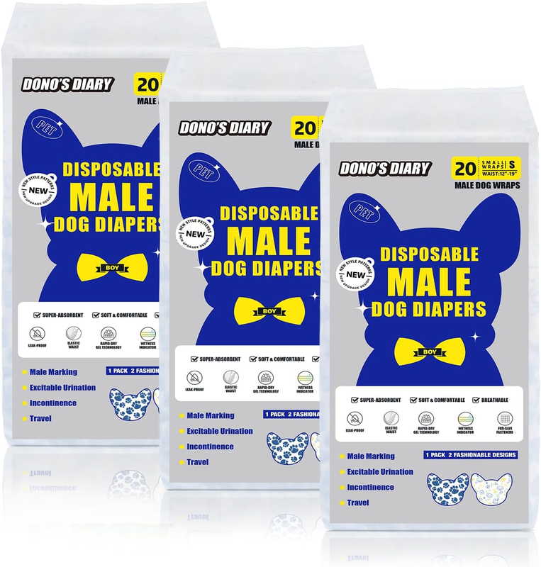 SUPER-ABSORBENT: Dono male dog wraps are made of high-quality materials. The new and improved disposable dog diaper has a thicker core than the other diaper. The super-absorbent core can absorb urine quickly and turns to gel, moisture is instantly absorbed and wicked away from your dog?s fur for comfortable, long-lasting protection