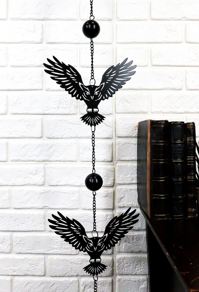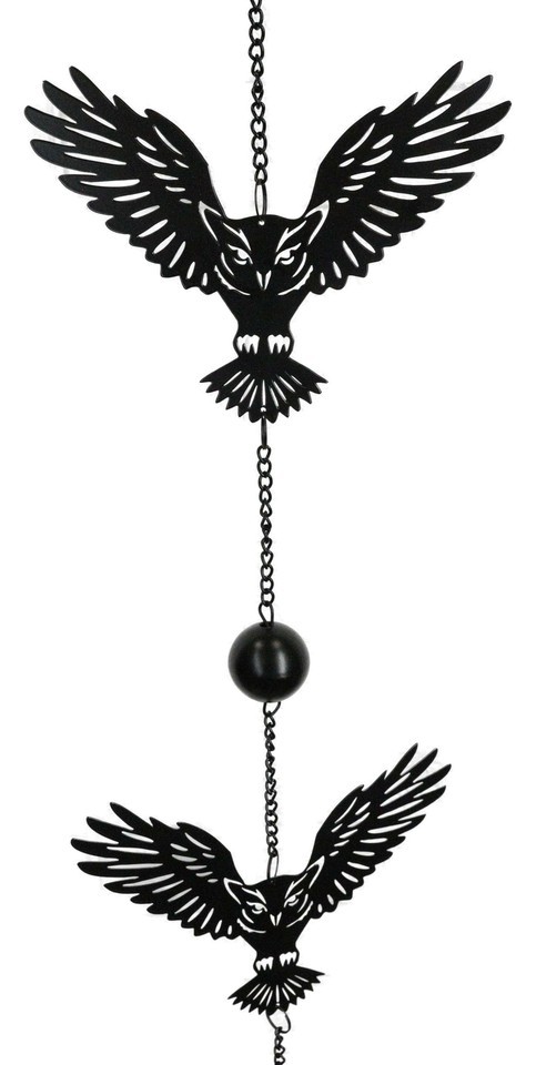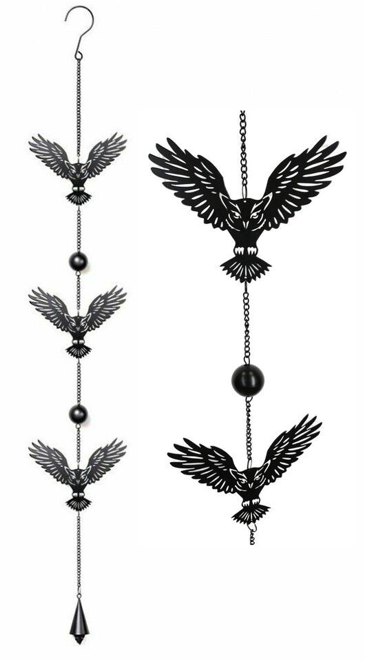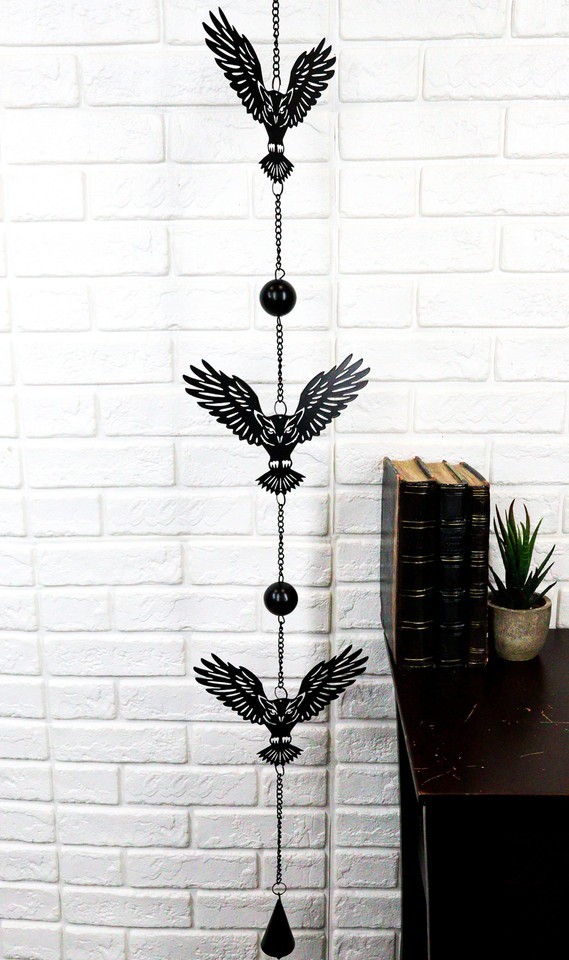 Ebros Whimsical Alchemy Sorcerer Night Goth Owls Metal Wall Hanging Mobile Wind Chime