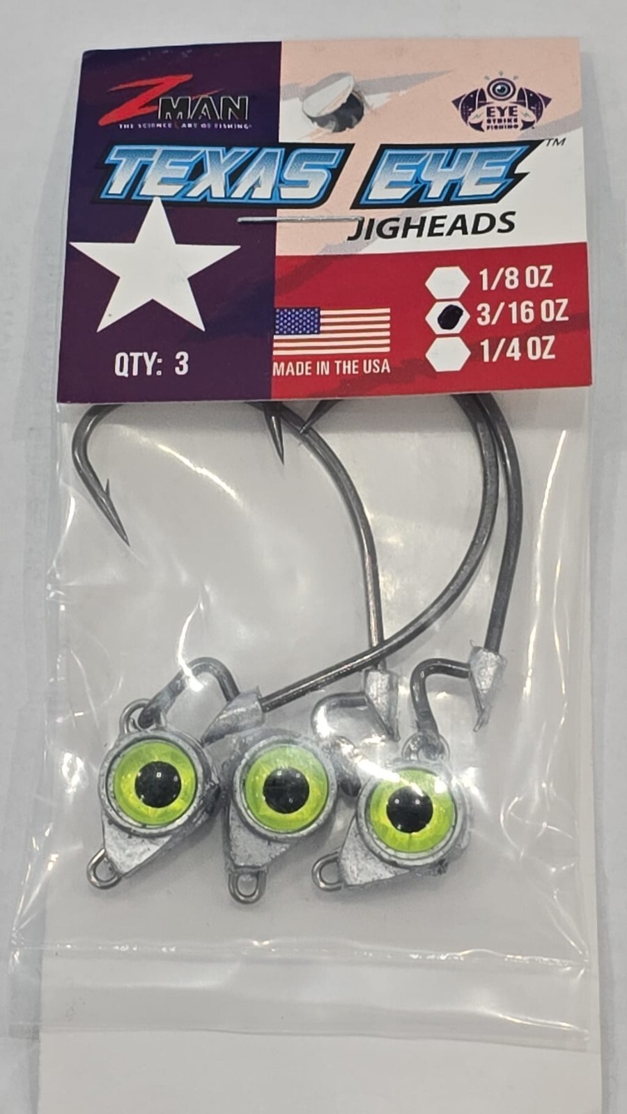 Z-Man Texas Eye Jigheads Articulated Swinging Fishing 3 pack 3/16 Chartreuse oz