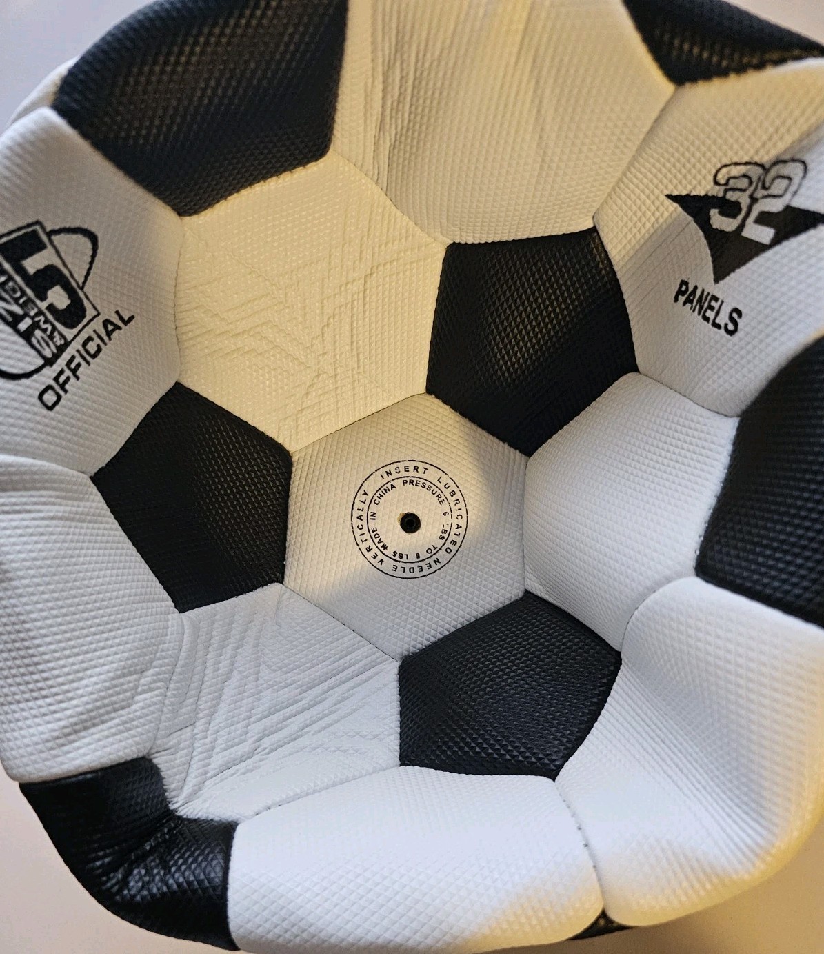 The Official Lubricated needle Weight Soccer Ball in size 5 is a vintage-style ball made of composite leather with machine-stitched seams, suitable for training purposes. This black and white ball is designed for outdoor play and artificial turf surfaces, weighing it for improved performance. It is a high-quality, official brand ball that is perfect for soccer enthusiasts looking for a durable and well-crafted ball for their training sessions. Made in China, this unit is a single soccer ball with a unique patch design and is ideal for players looking for a traditional yet reliable ball for their game.