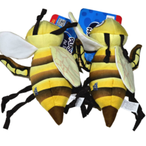 2 Pack Happy Tails Doodles Dog Toy Reinforced Liner Crinkle Plush Squeaker Bee 8.5in