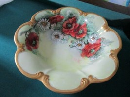 Tirschenreuther porzellan footed bowl made in Germany decorated with flowers and gold, 3" tall by 10 1/2" diameter, very good condition